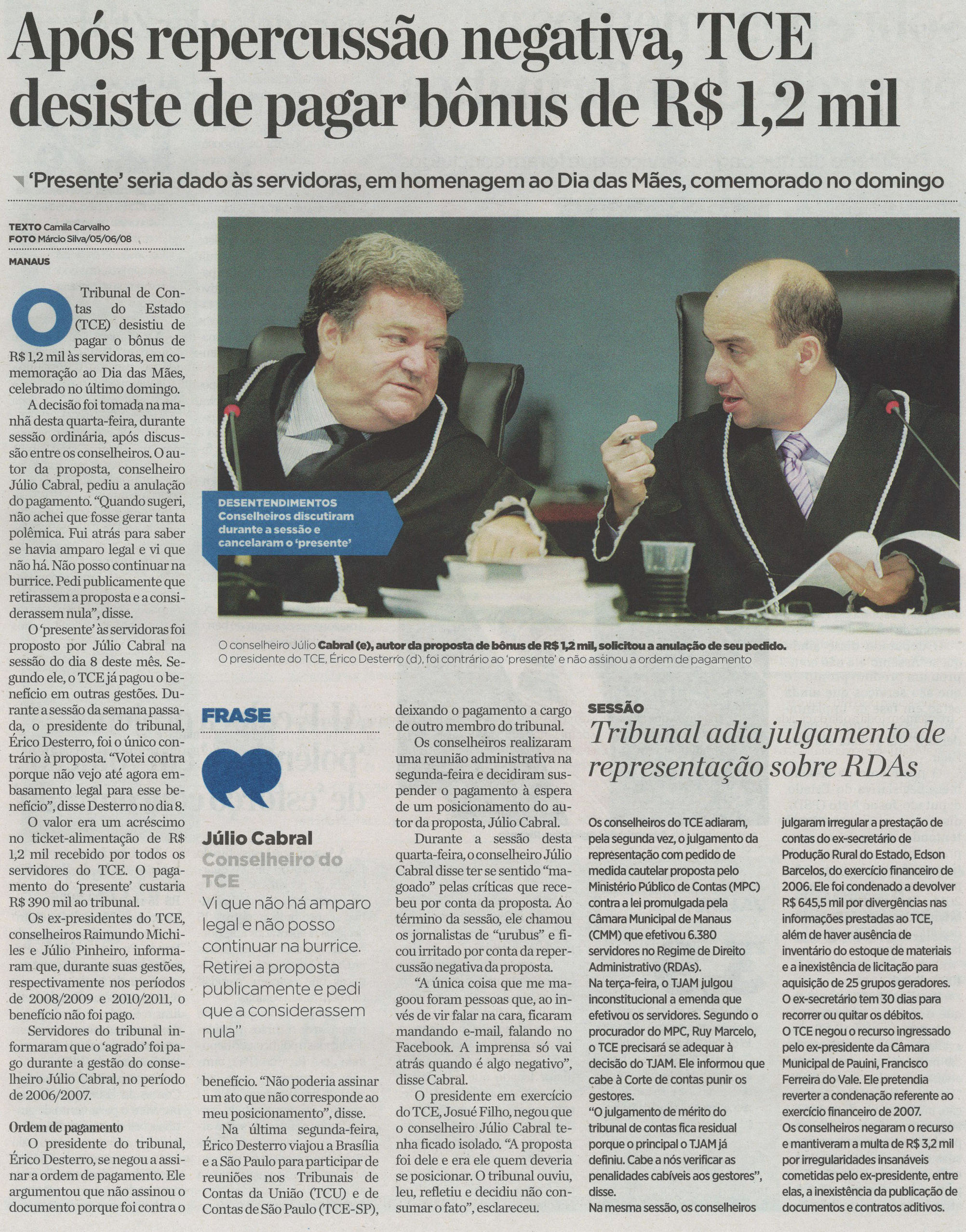 Após repercussão negativa, TCE desiste de pagar bônus de R$ 1,2 mil |