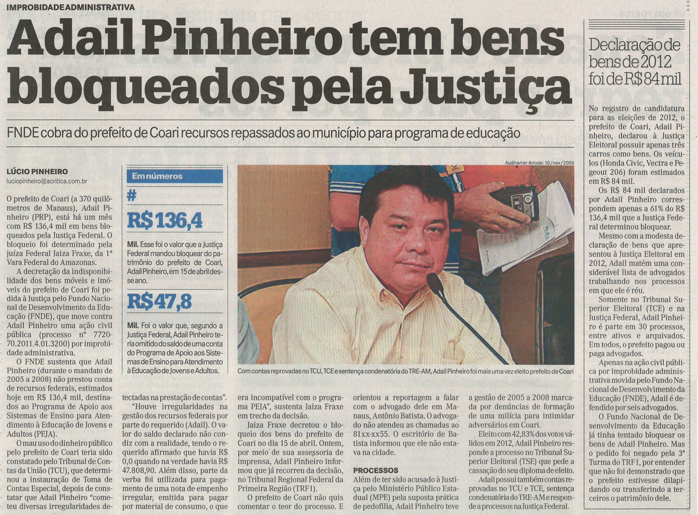 Adail Pinheiro tem bens bloqueados pela Justiça |