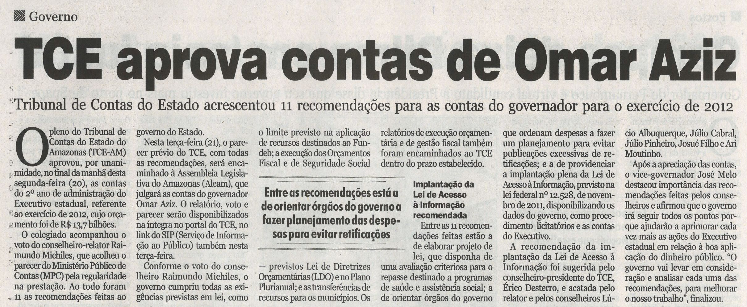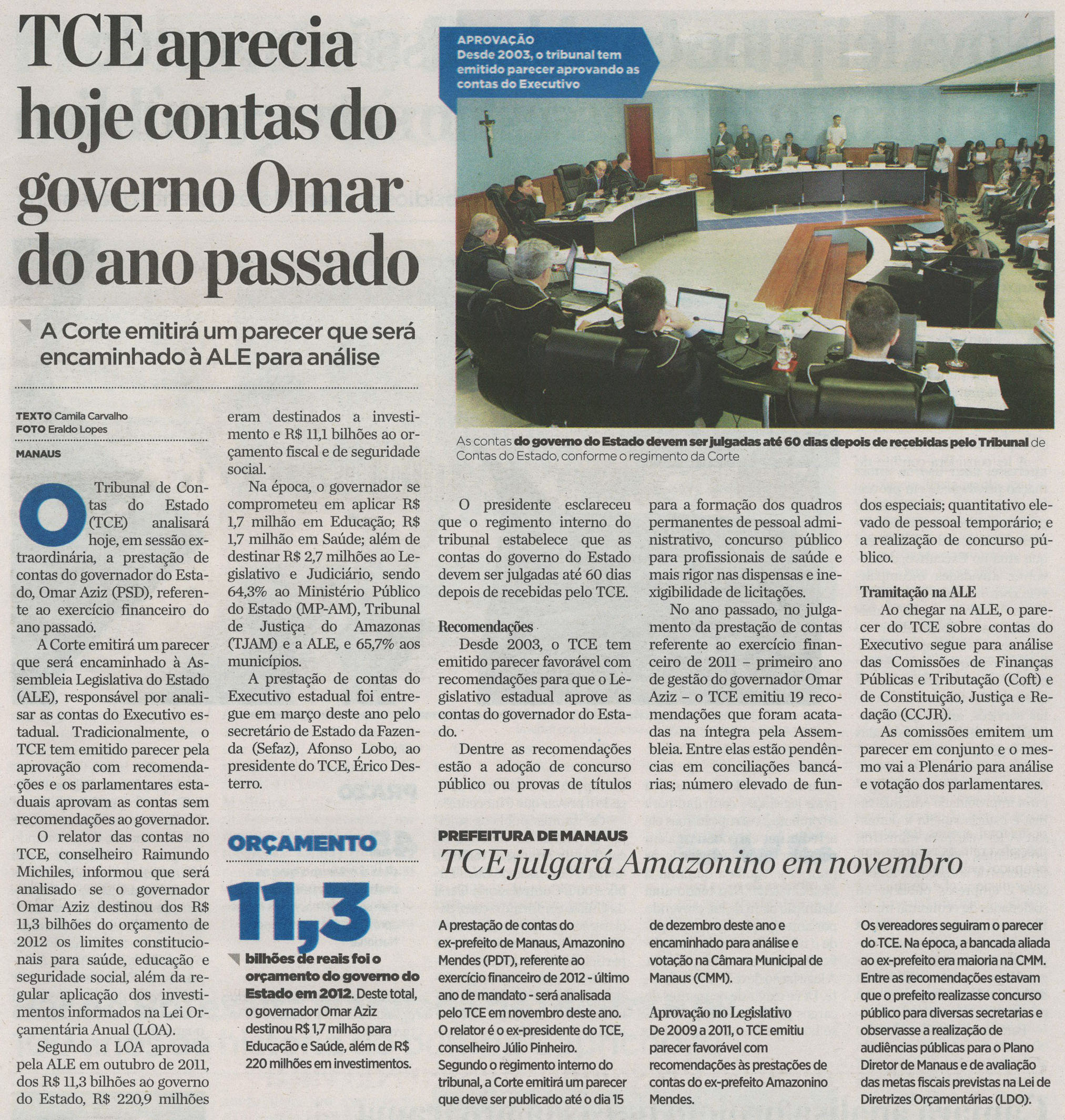 TCE aprecia hoje contas do governo Omar do ano passado |