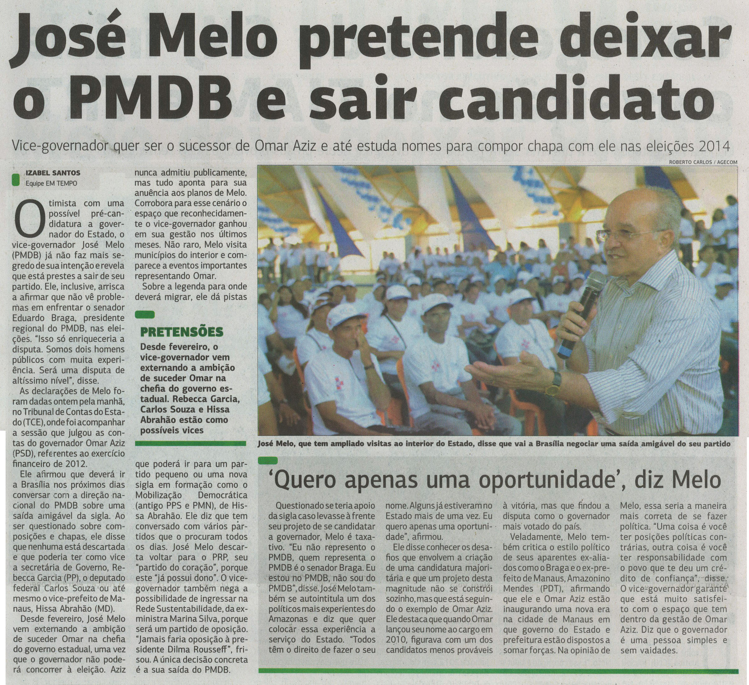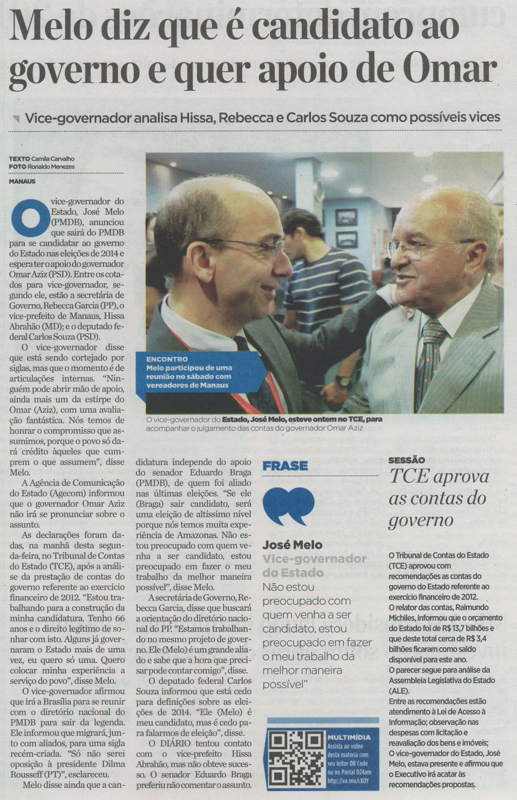 Melo diz que é candidato ao governo e quer apoio de Omar |