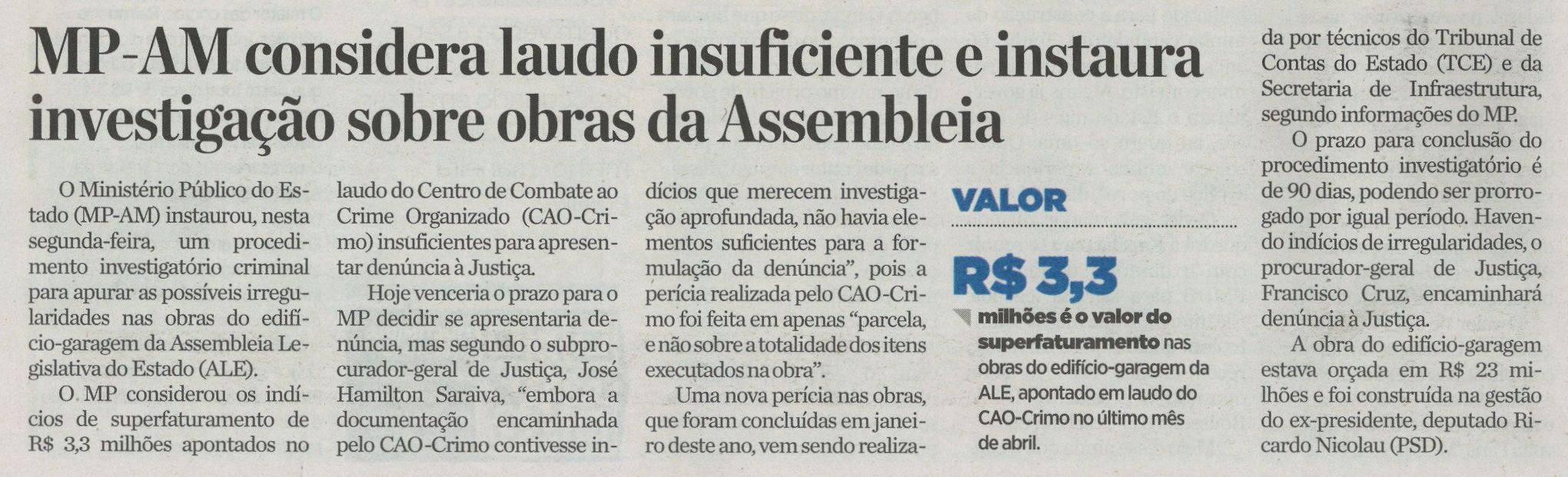 MP-AM considera laudo insuficiente e instaura investigação sobre obras da Assembleia |