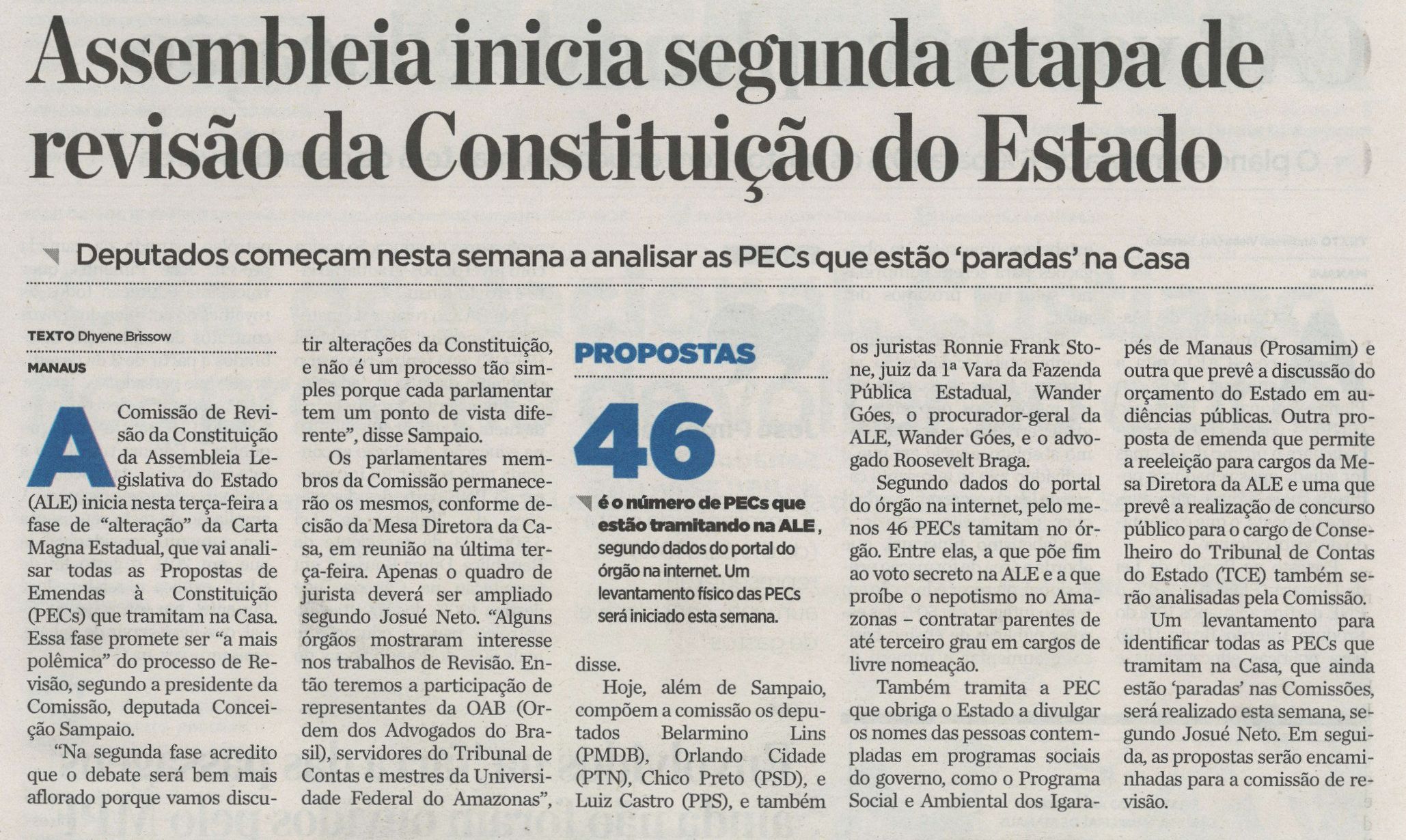 Assembleia inicia segunda etapa de revisão da Constituição do Estado |