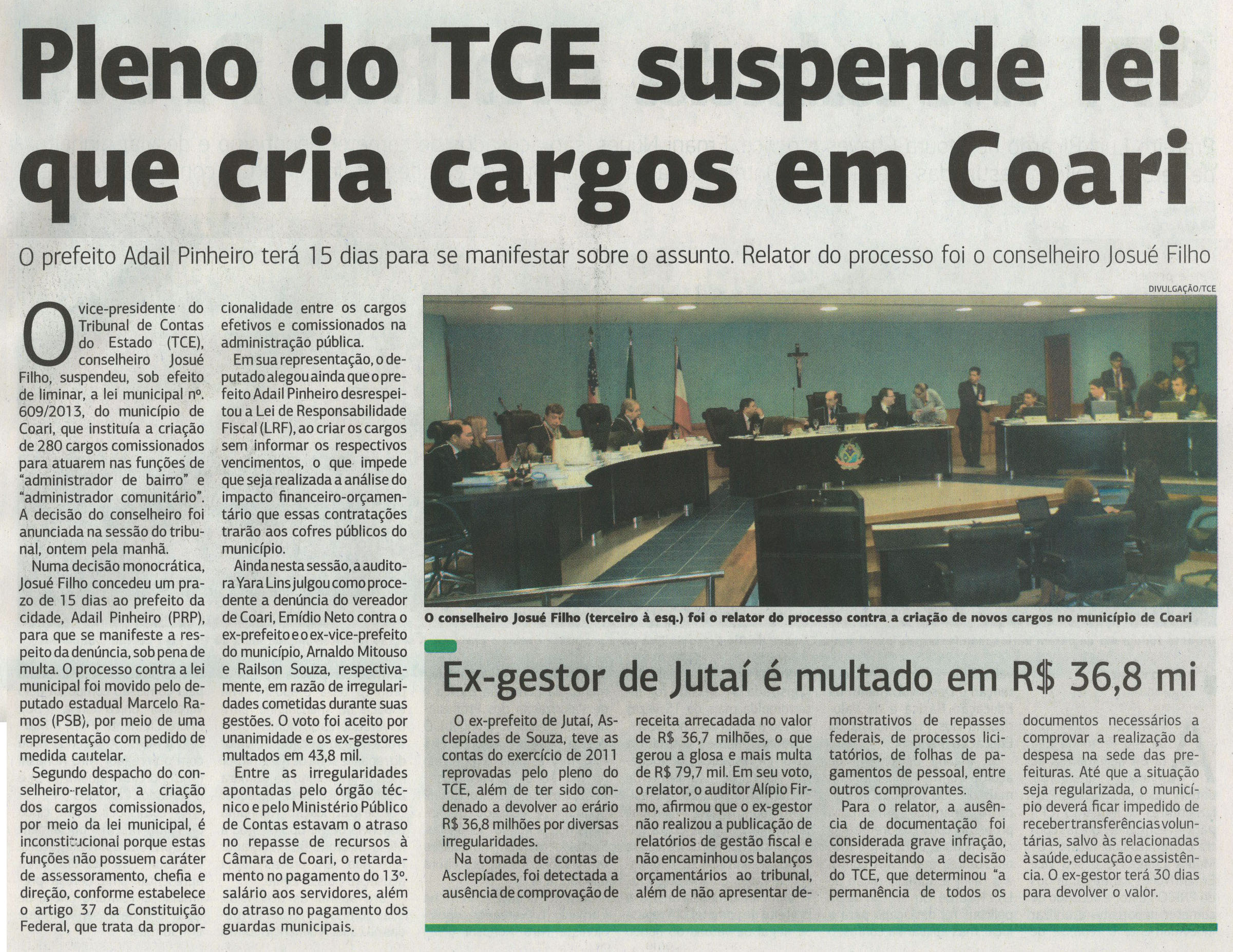 Pleno do TCE suspende lei que cria cargos em Coari |