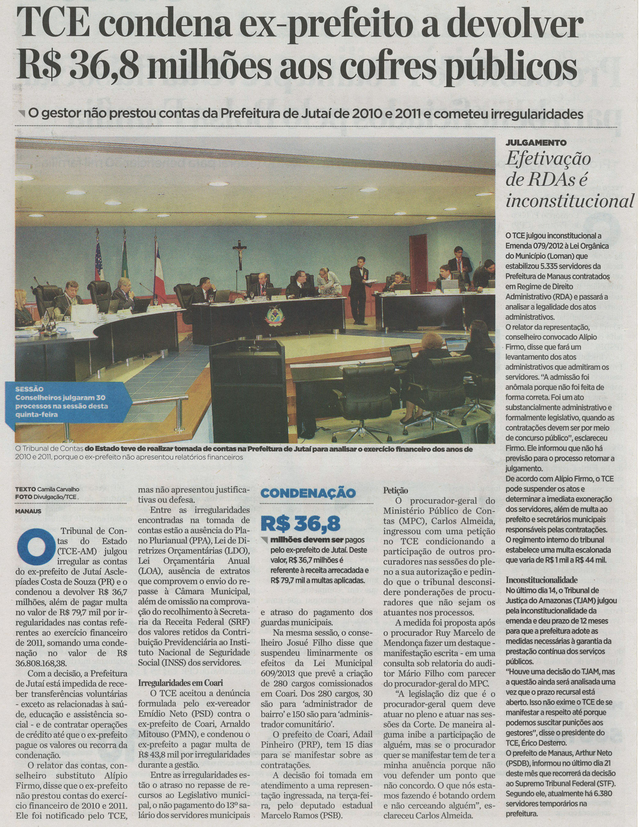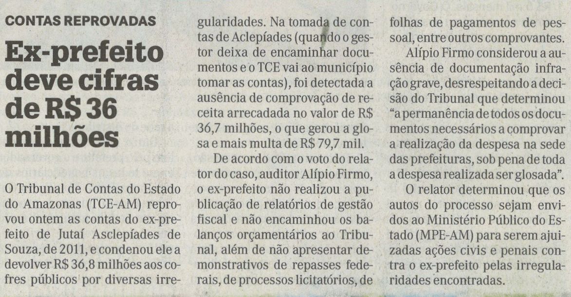 TCE condena ex-prefeito a devolver R$ 36,8 milhões aos cofres públicos |