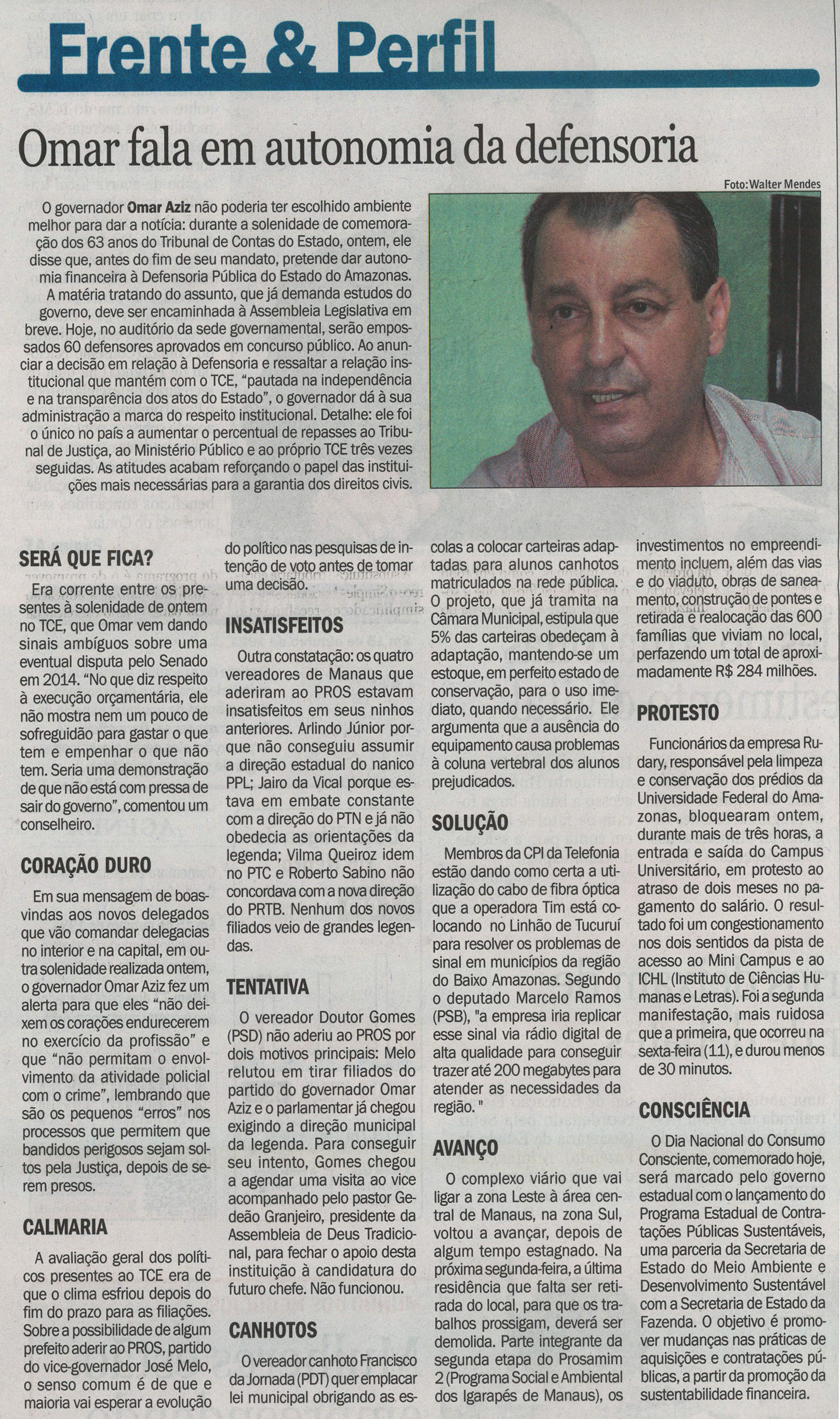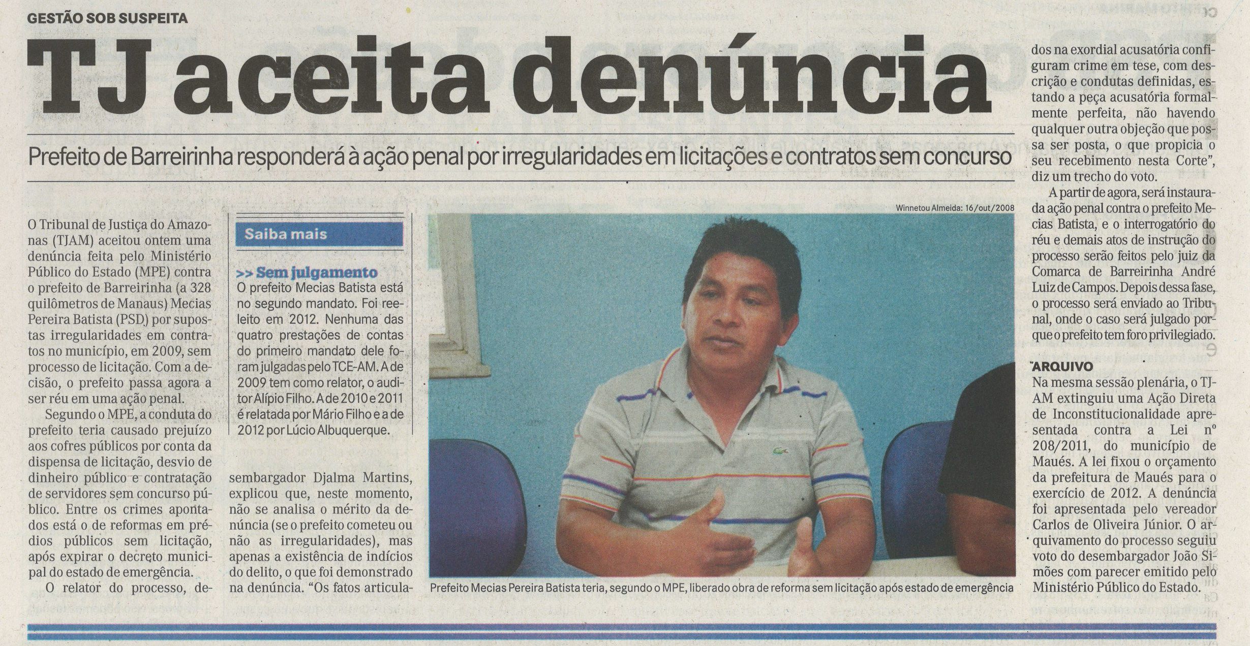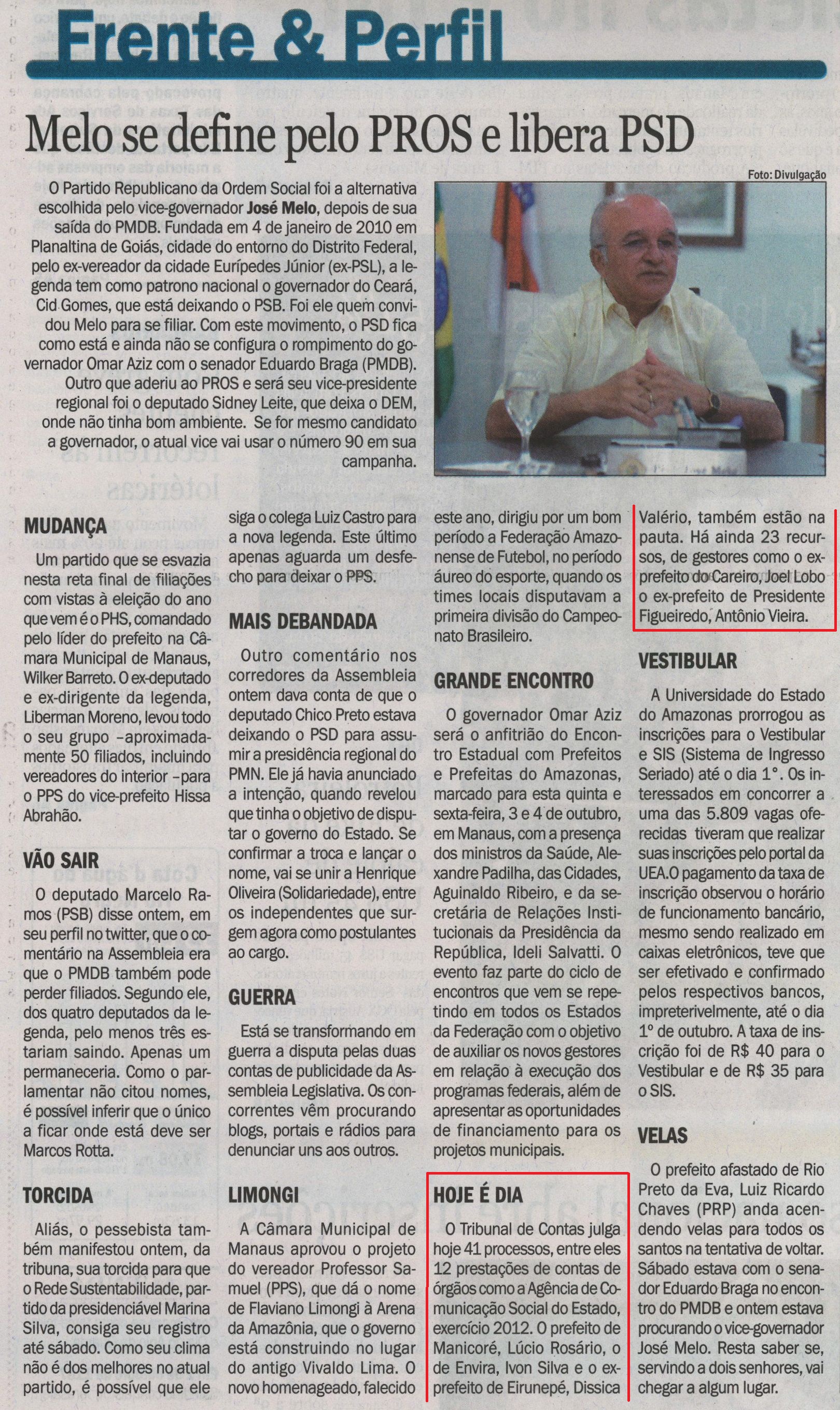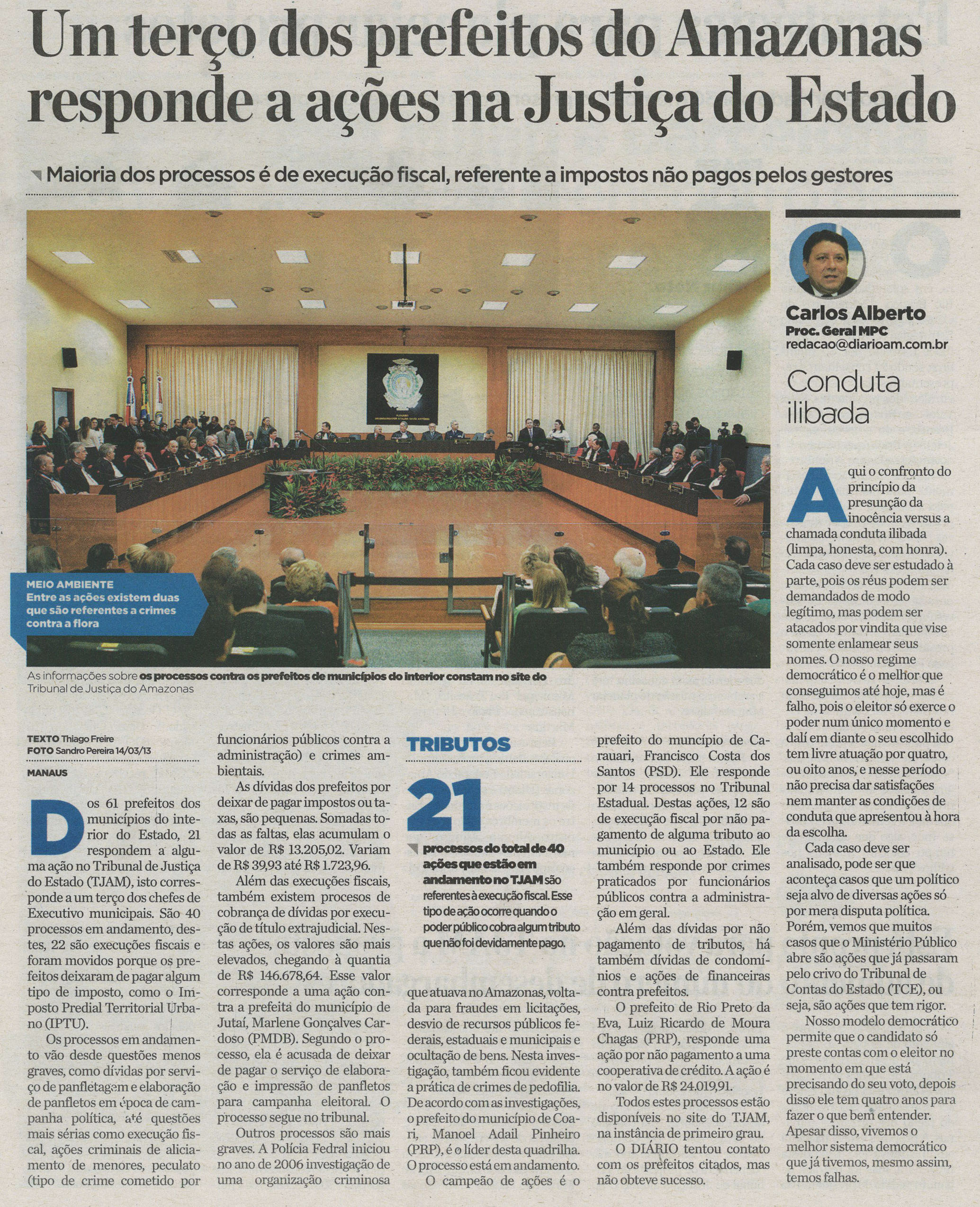 22/10/13 Diário do Amazonas Um terço dos prefeitos do Amazonas responde a ações na Justiça do Estado