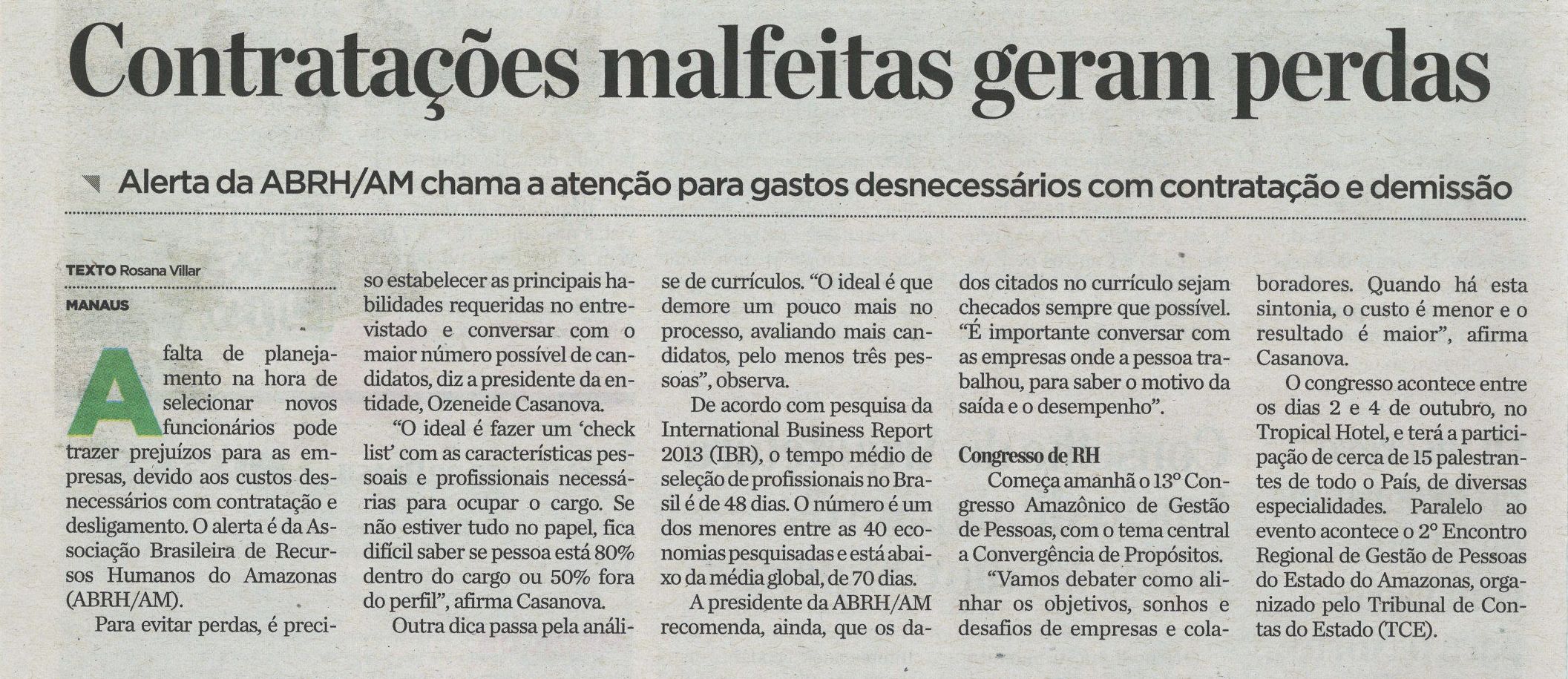 1/10/13 Diário do Amazonas Contratações mal feitas geram perdas