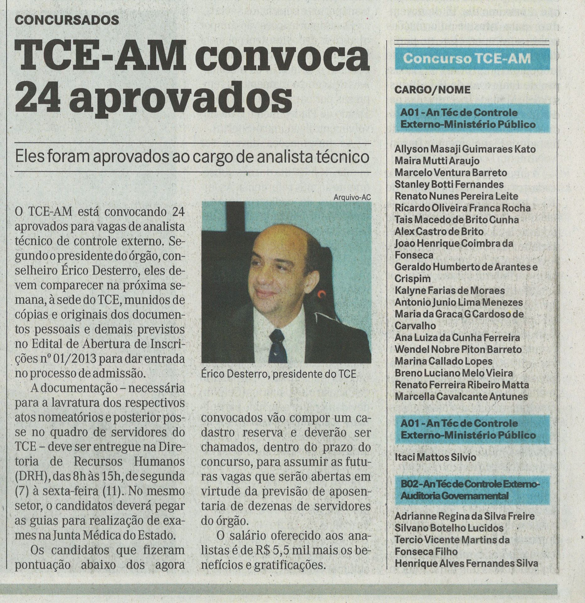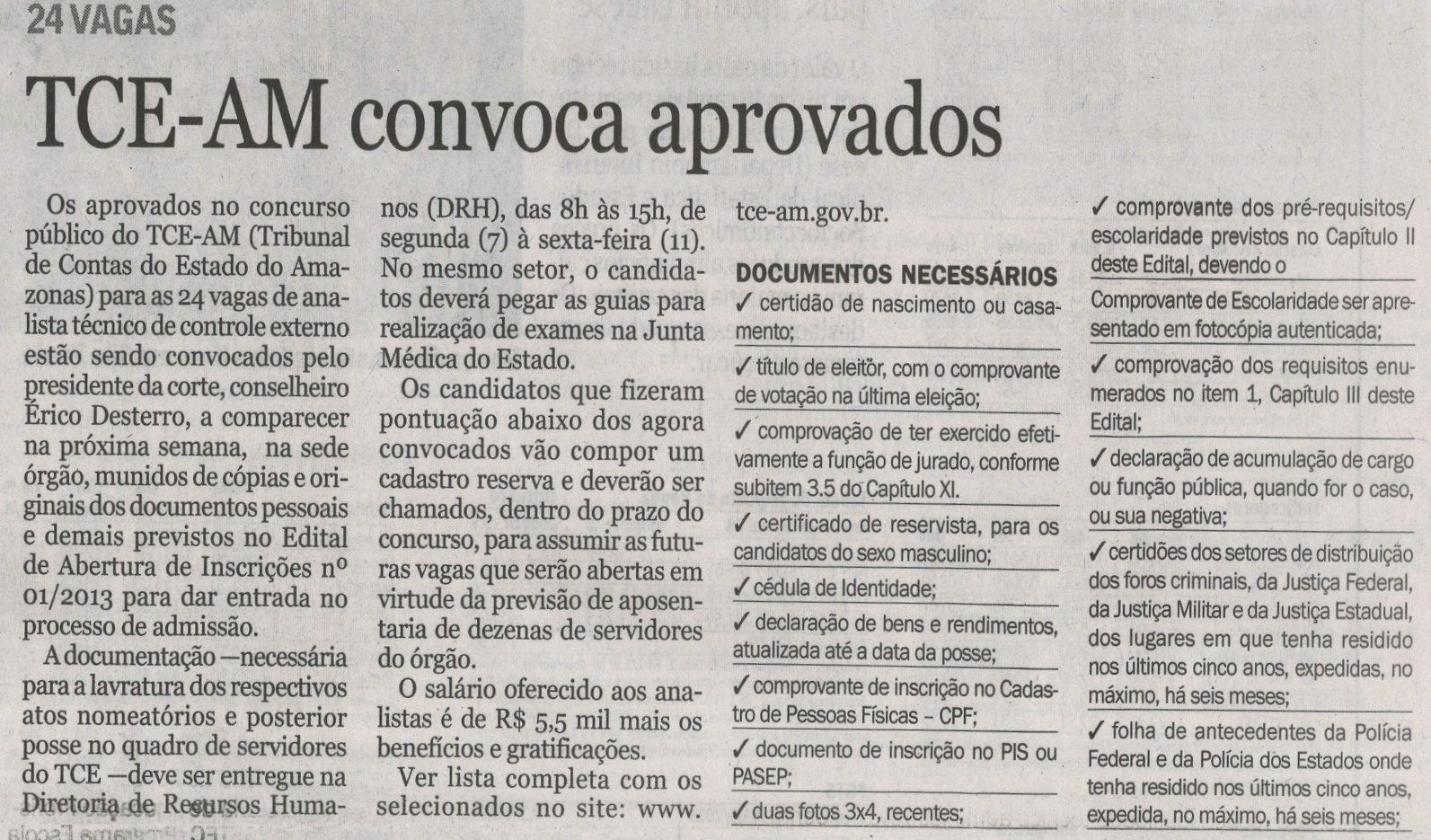 4/10/13 A Crítica TCE-AM convoca 24 aprovados