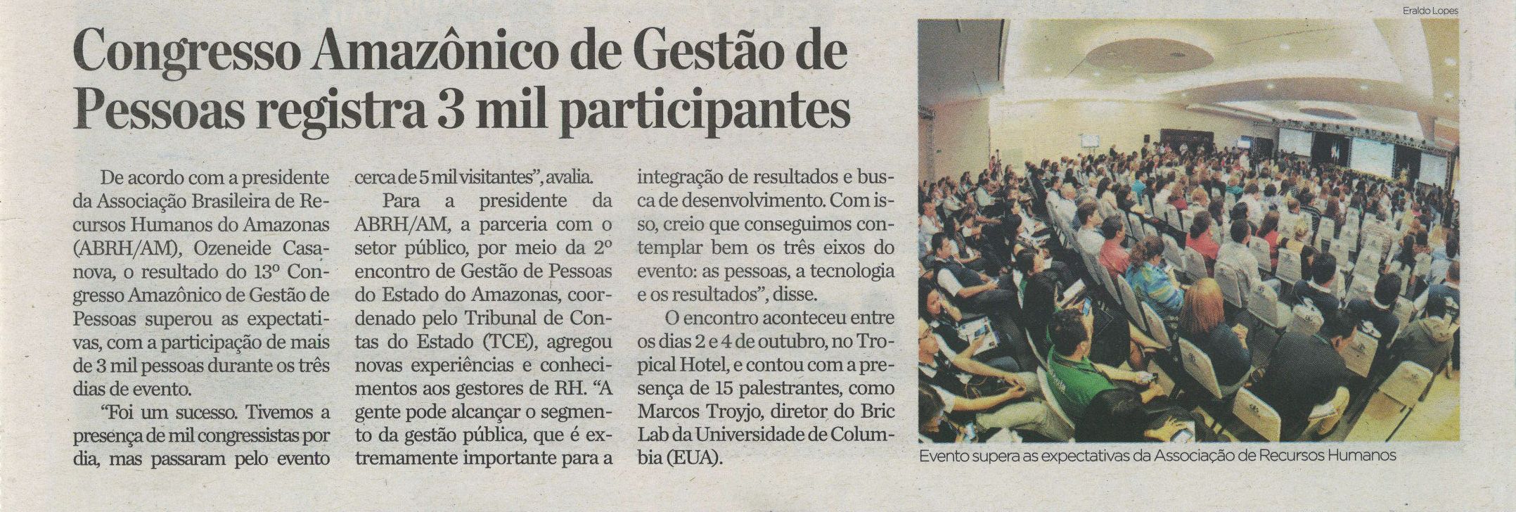 05/10/13 Diário do Amazonas Congresso Amazônico de Gestão de Pessoas registra 3 mil participantes