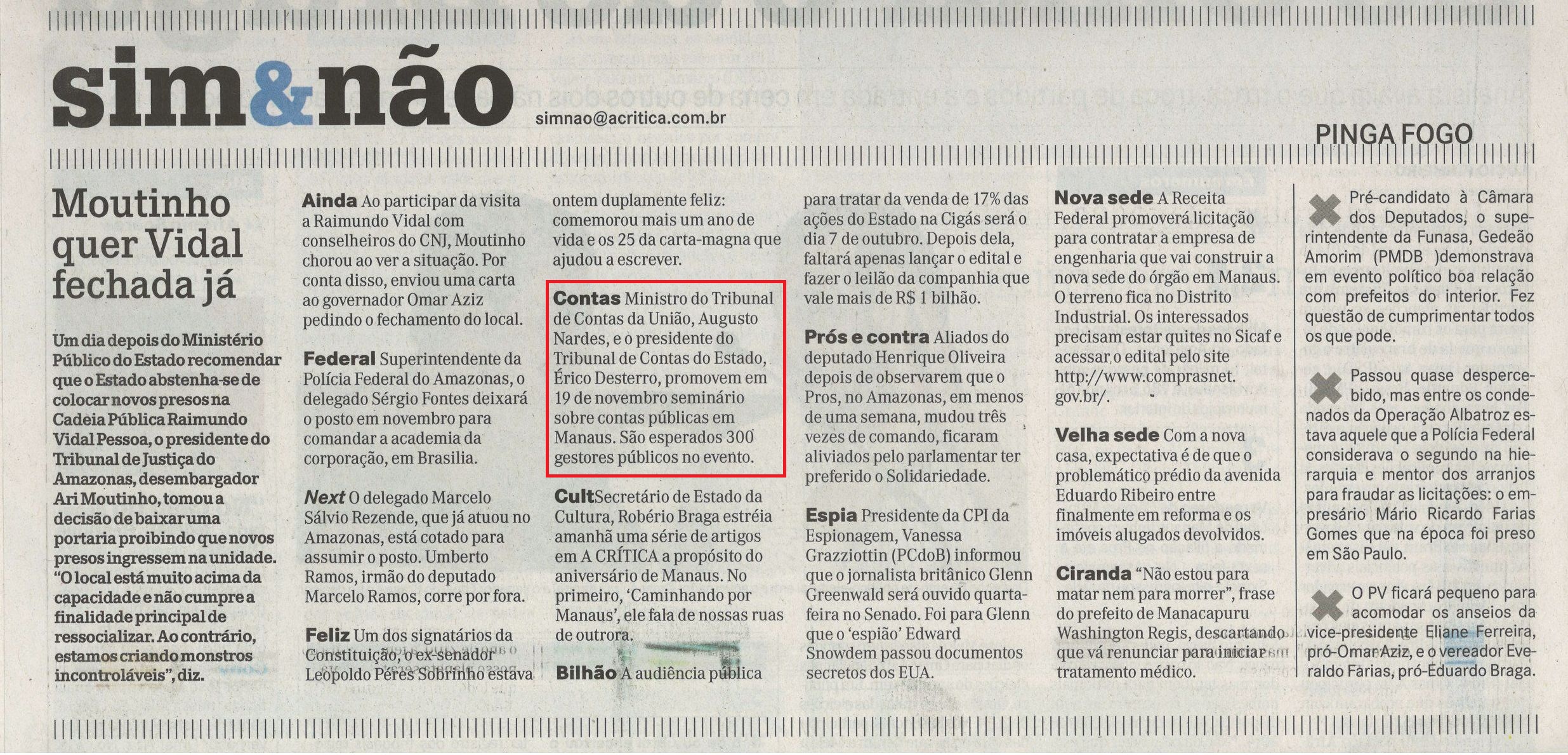 19/10/13 A Crítica Conselheiros do TCE-AM contra controle externo