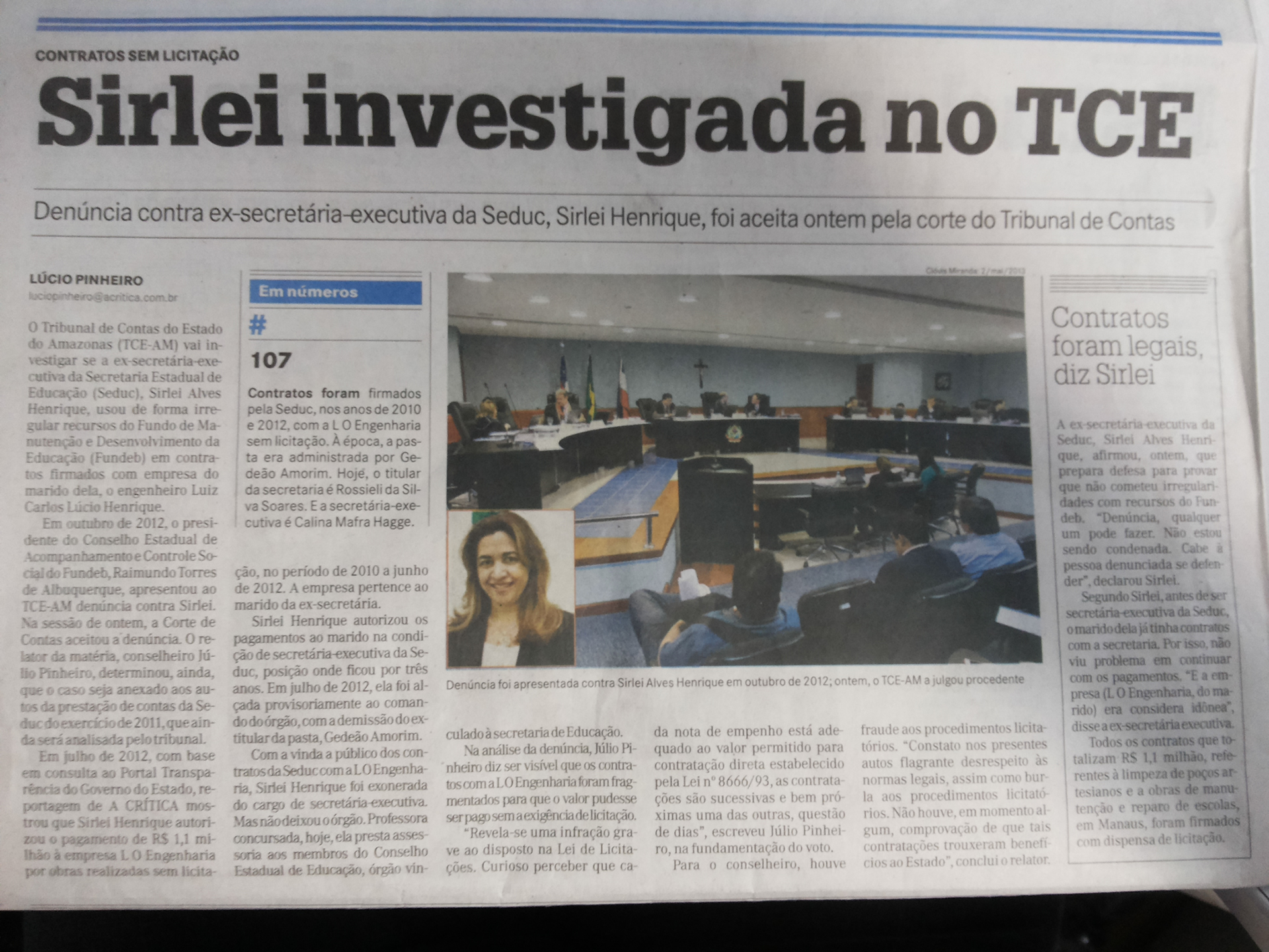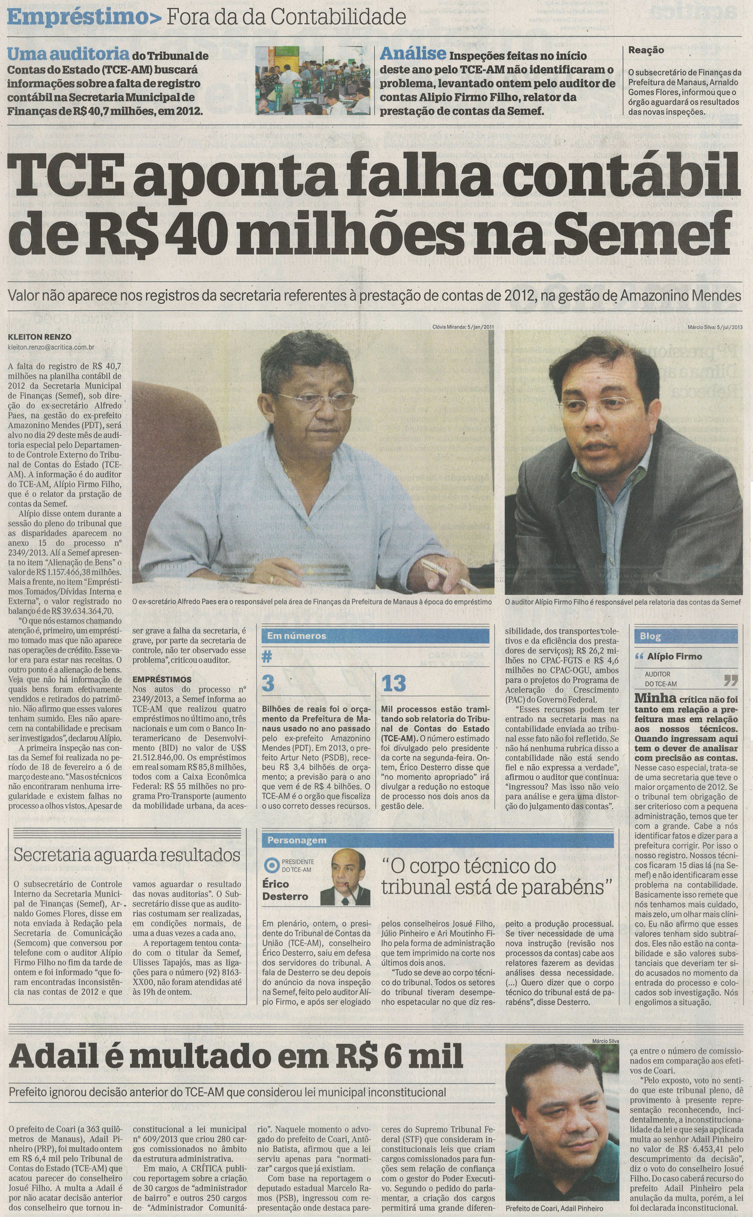 17/10/13 A Crítica TCE aponta falha contábil de R$ 40 milhões na Semef