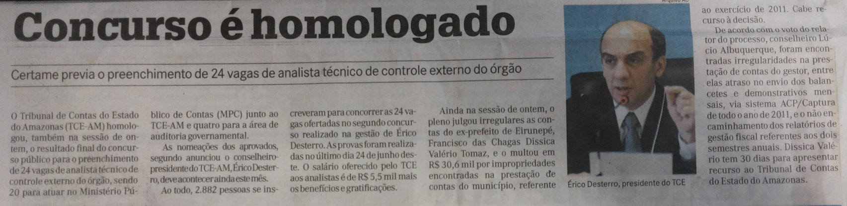 3/10/13 Diário do Amazonas TCE decide homologar resultado definitivo do concurso