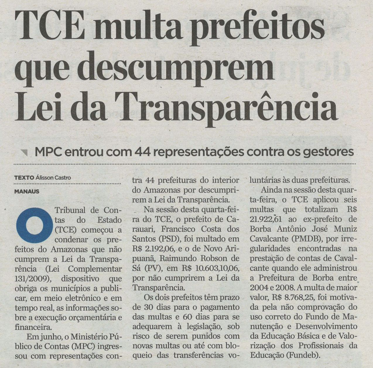 10/10/13 Diário do Amazonas TCE multa prefeitos que descumprem Lei da Transfência