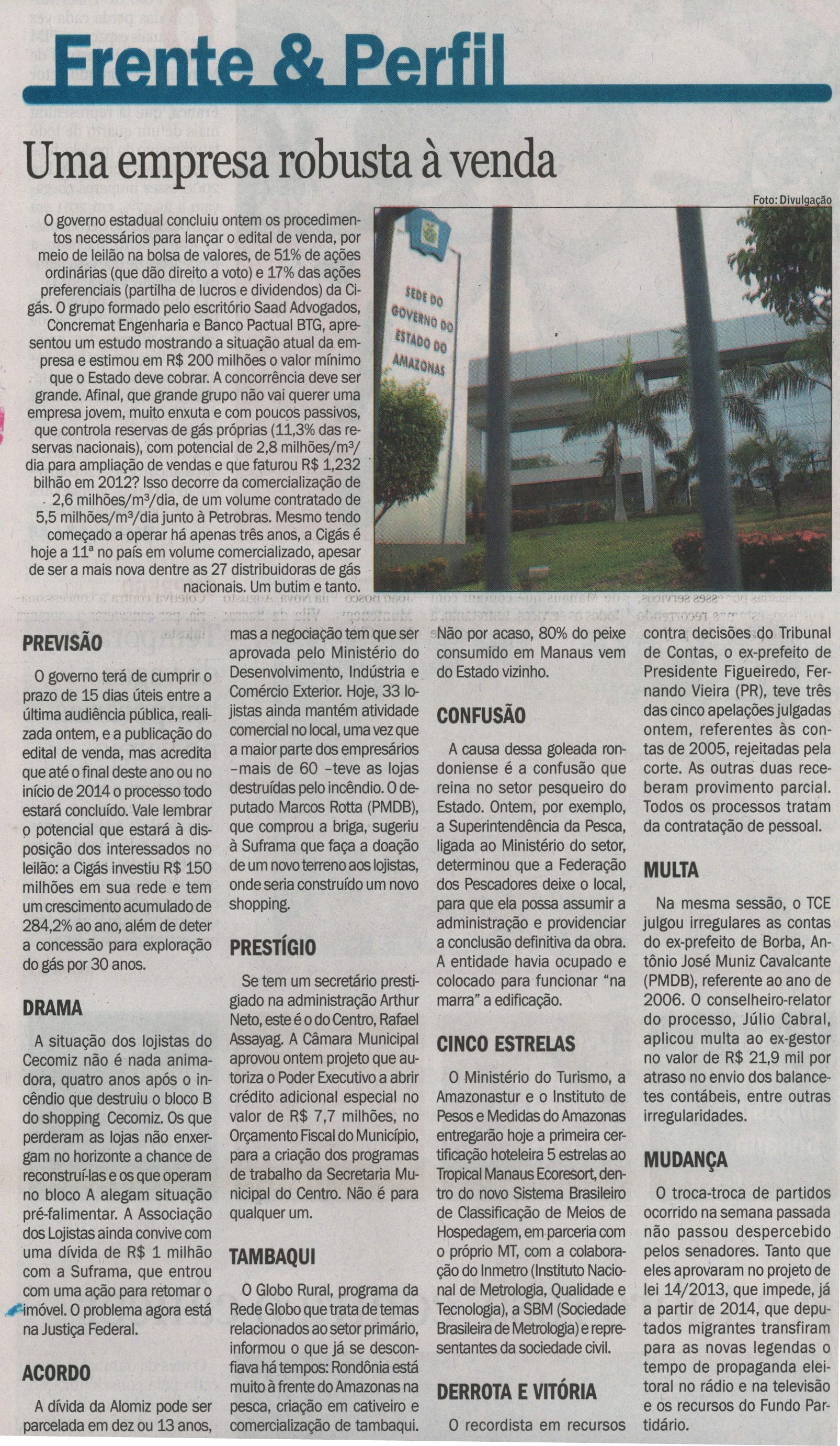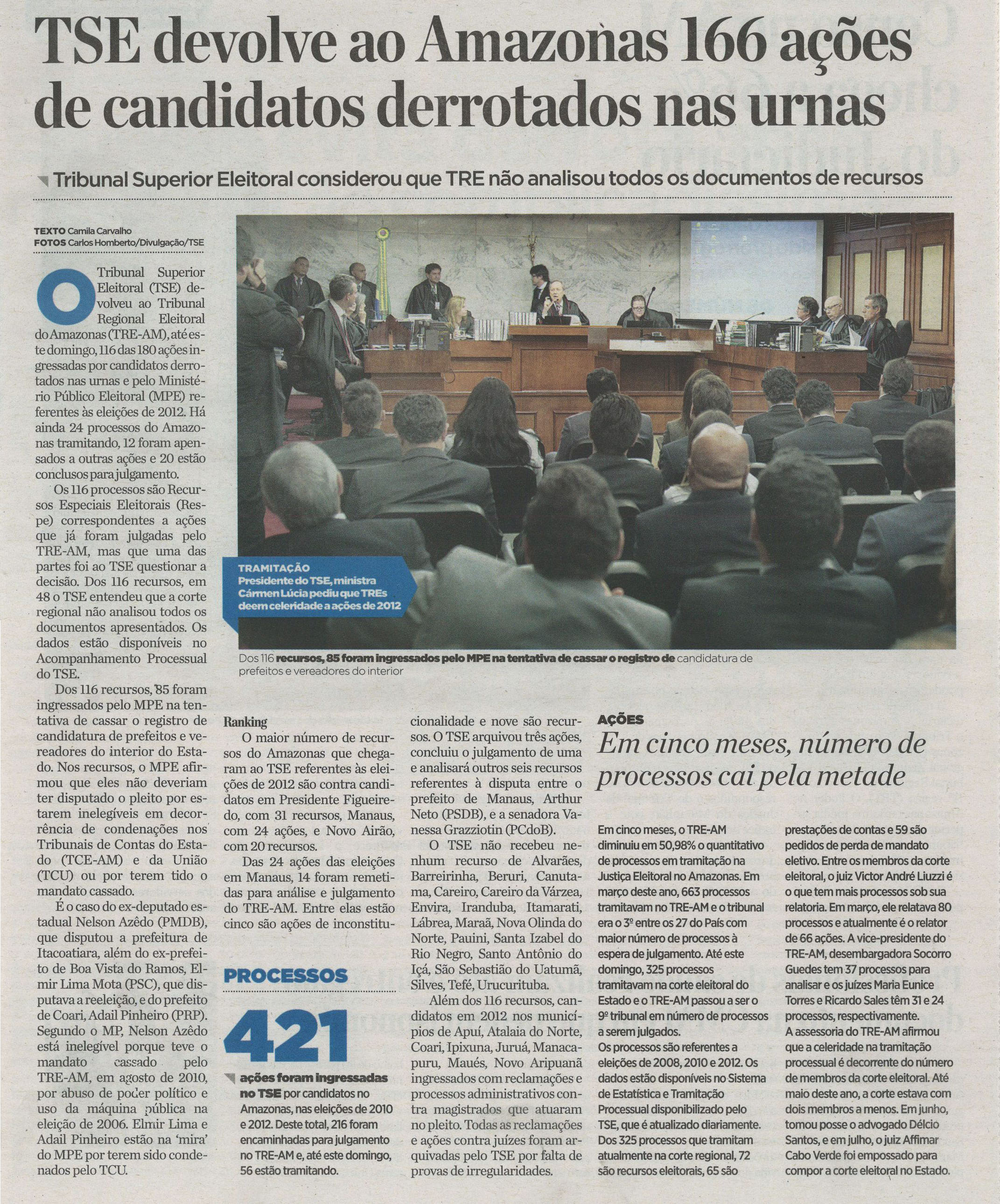 21/10/13 Diário do Amazonas TSE devolve ao Amazonas 166 ações de candidatos derrotados nas urnas