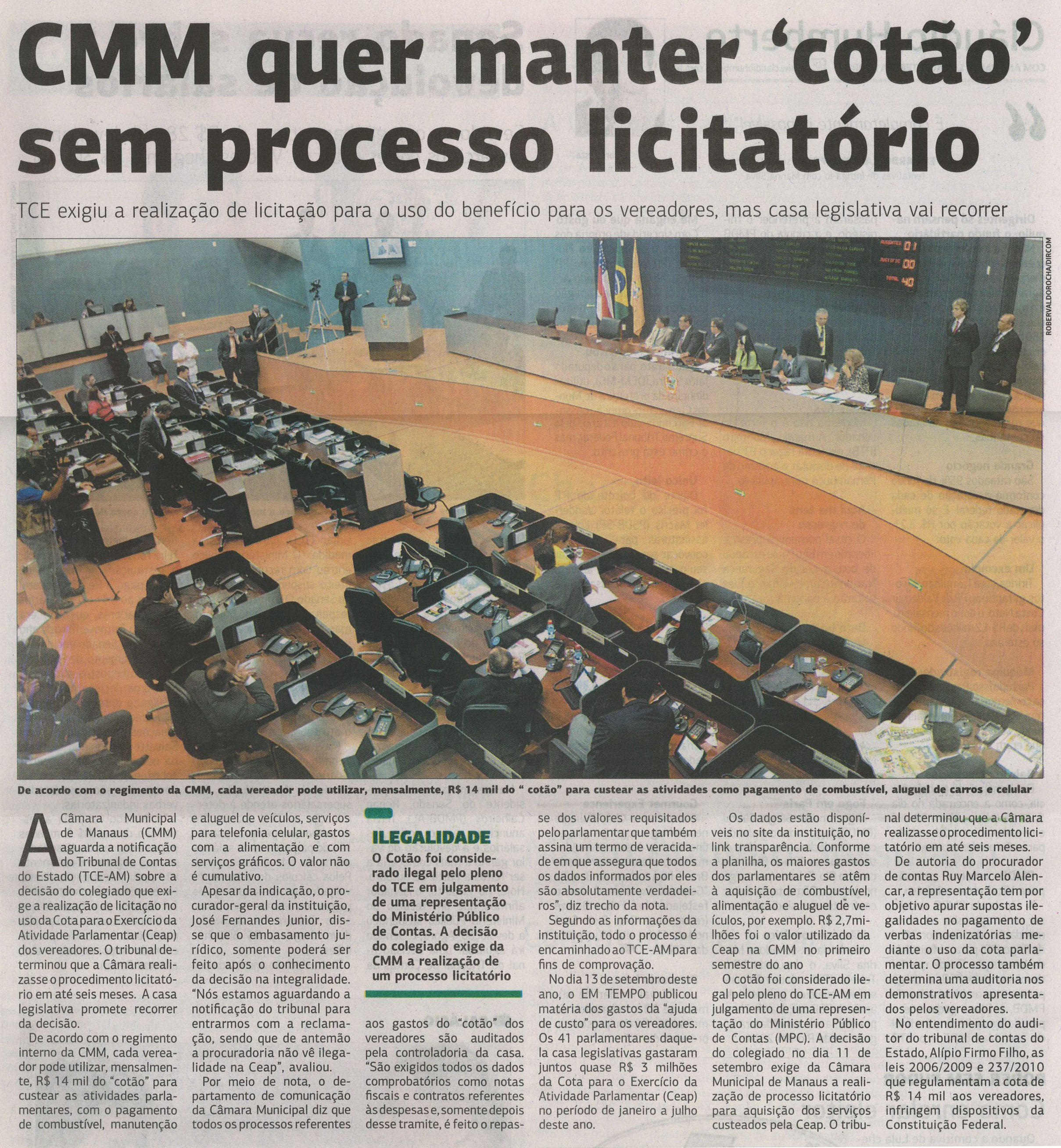 11/10/13 Amazonas em Tempo CMM quer manter 'cotão' sem processo licitatório