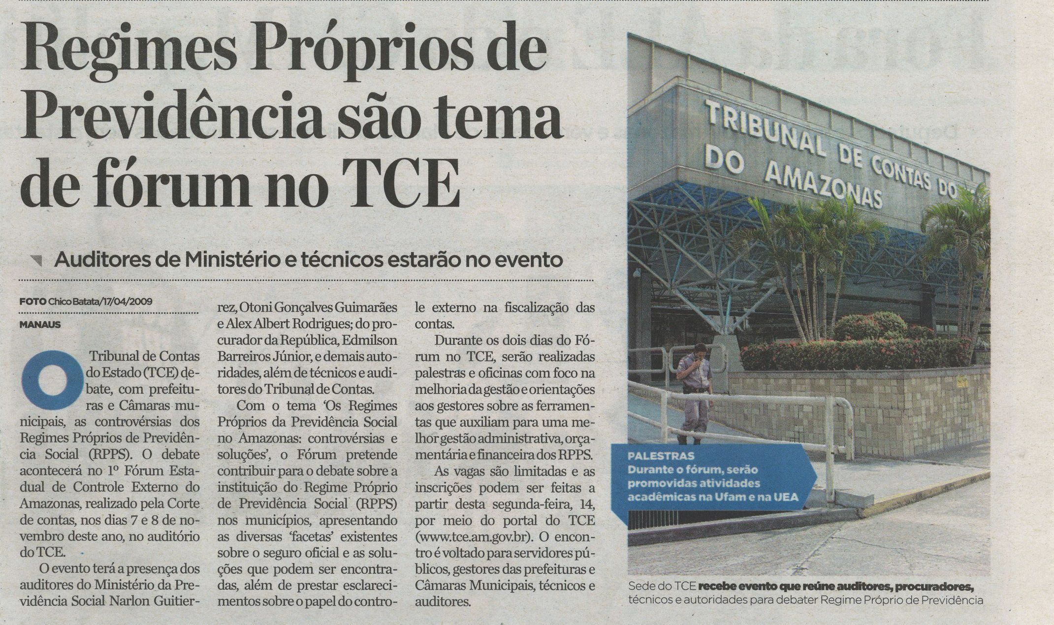 13/10/13 Diário do Amazonas Regimes Próprios de Previdência são tema de fórum no TCE