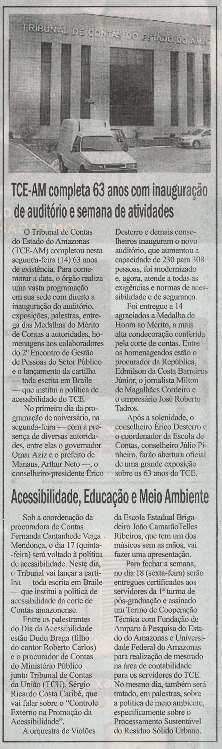 18/10/13 Diário do Amazonas Na semana comemorativa ao 63º aniversário do TCE/AM