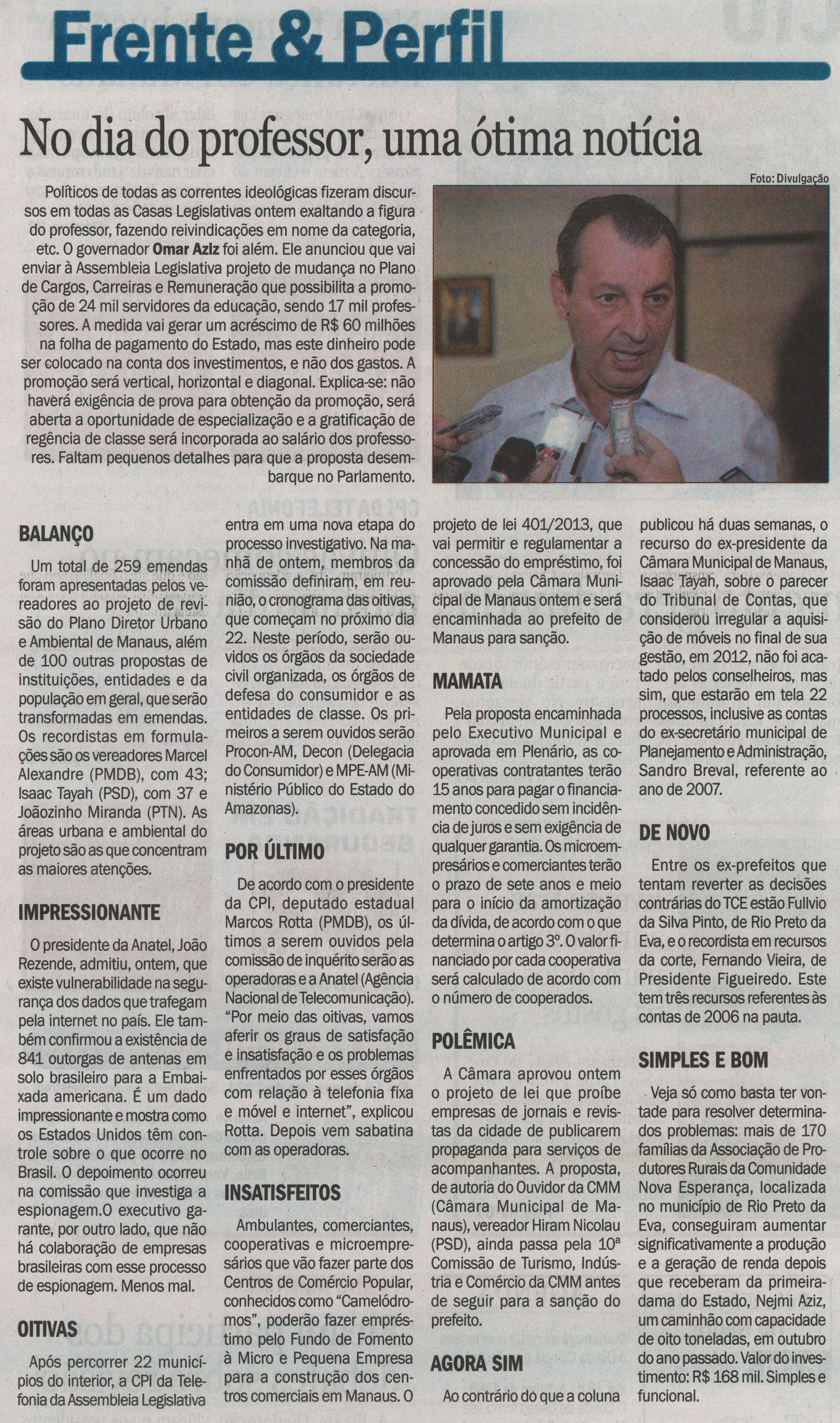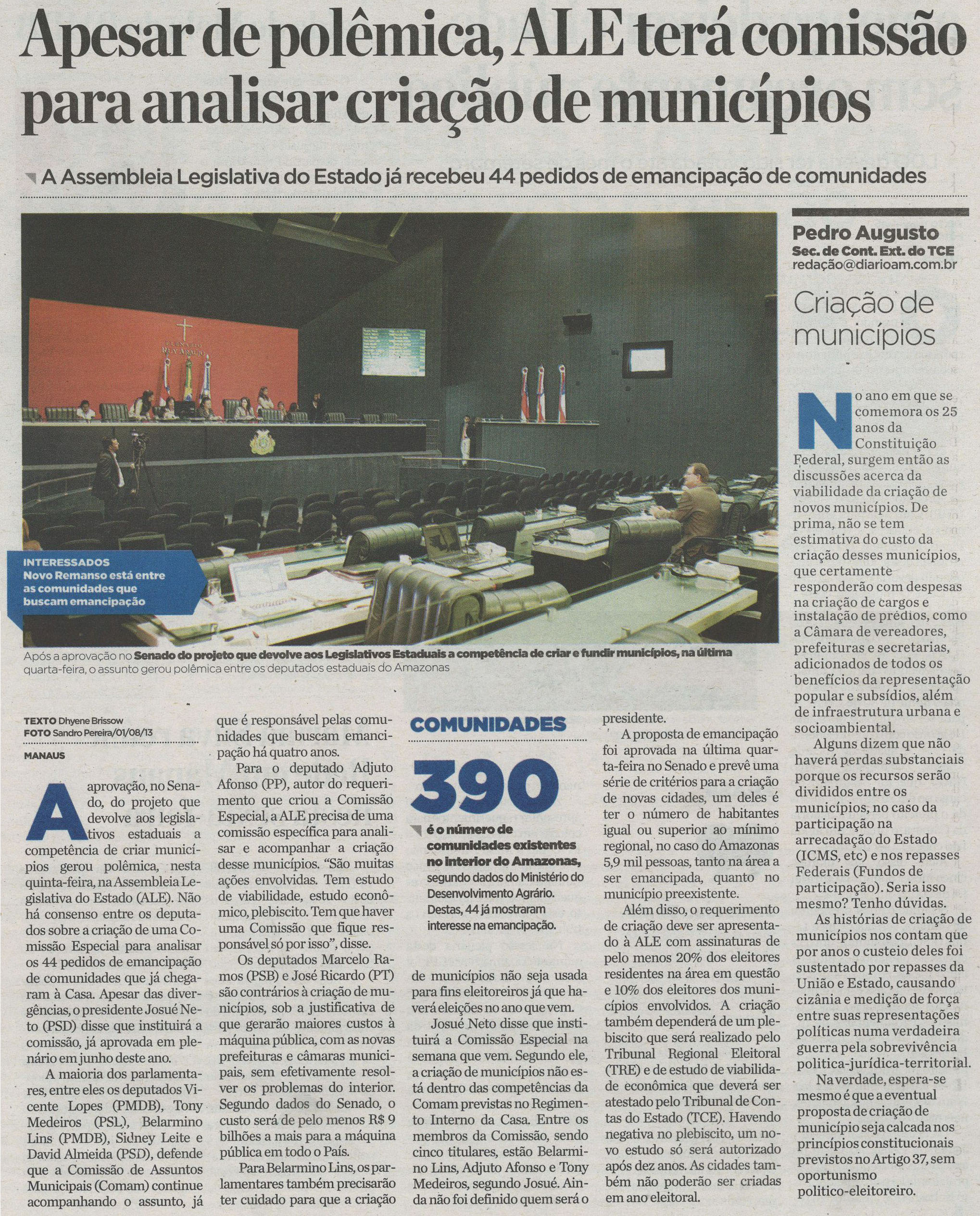18/10/13 Diário do Amazonas Apesar de polêmica, ALE terá comissão para analisar criação de municípios