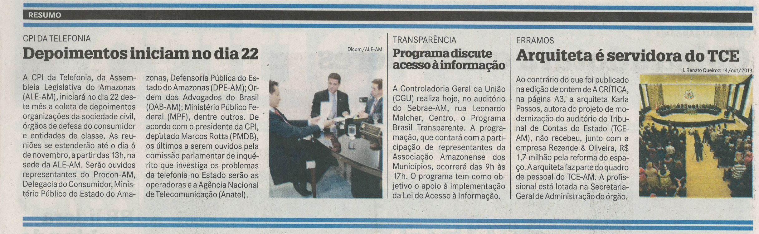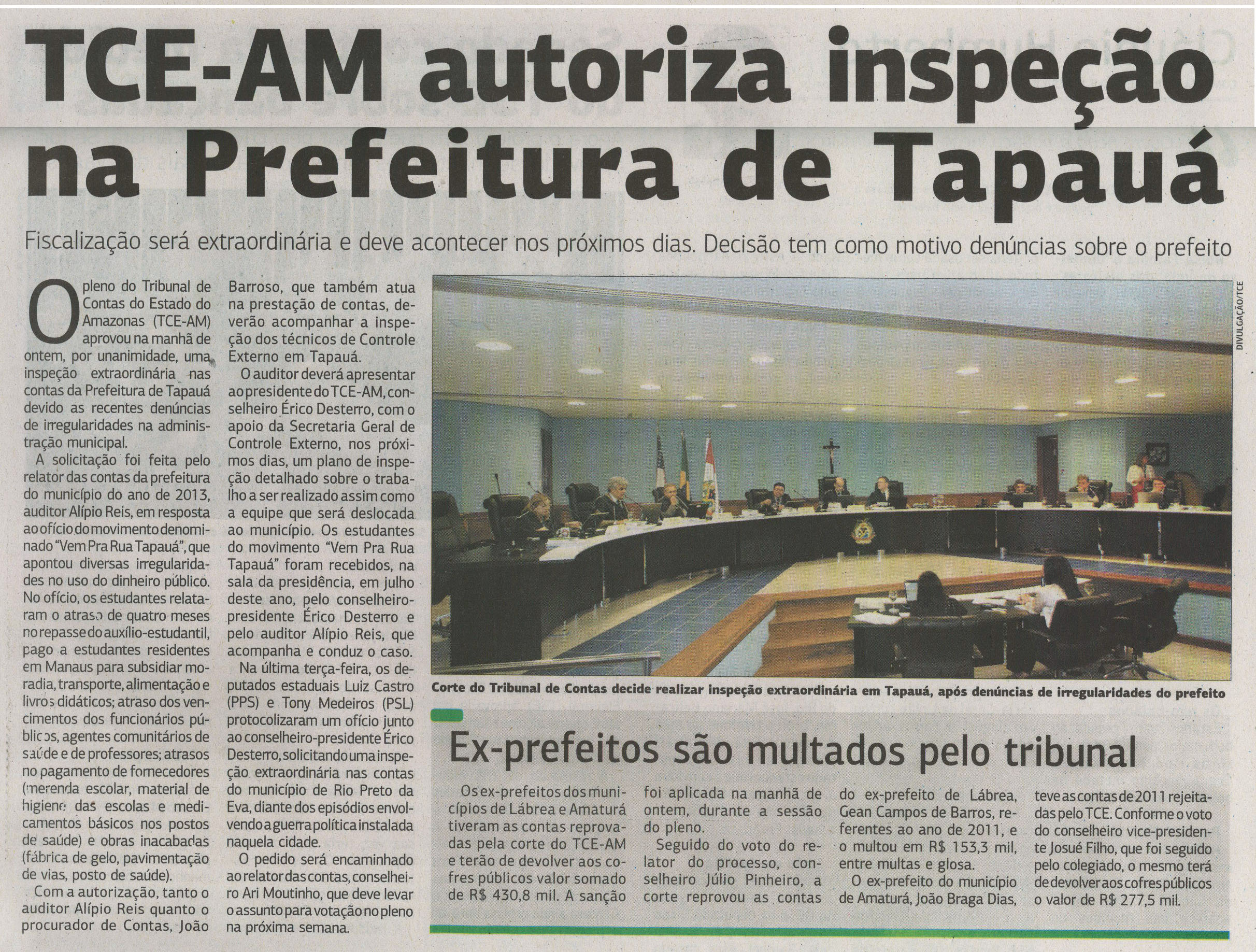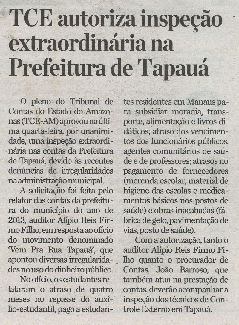 25/10/13 Diário do Amazonas TCE autoriza inspeção extraordinária na Prefeitura de Tapauá