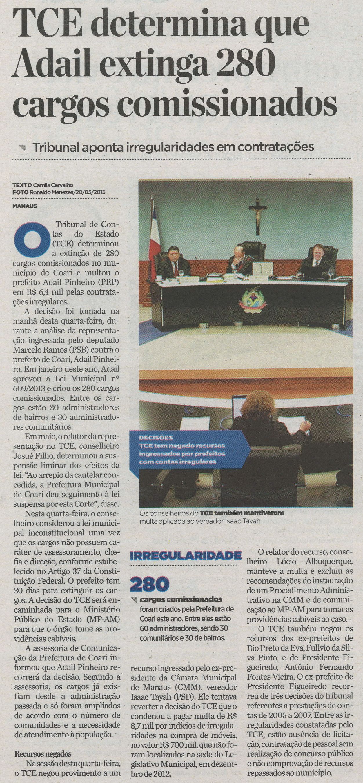 17/10/13 Diário do Amazonas TCE determina que Adail extinga 280 cargos comissionados