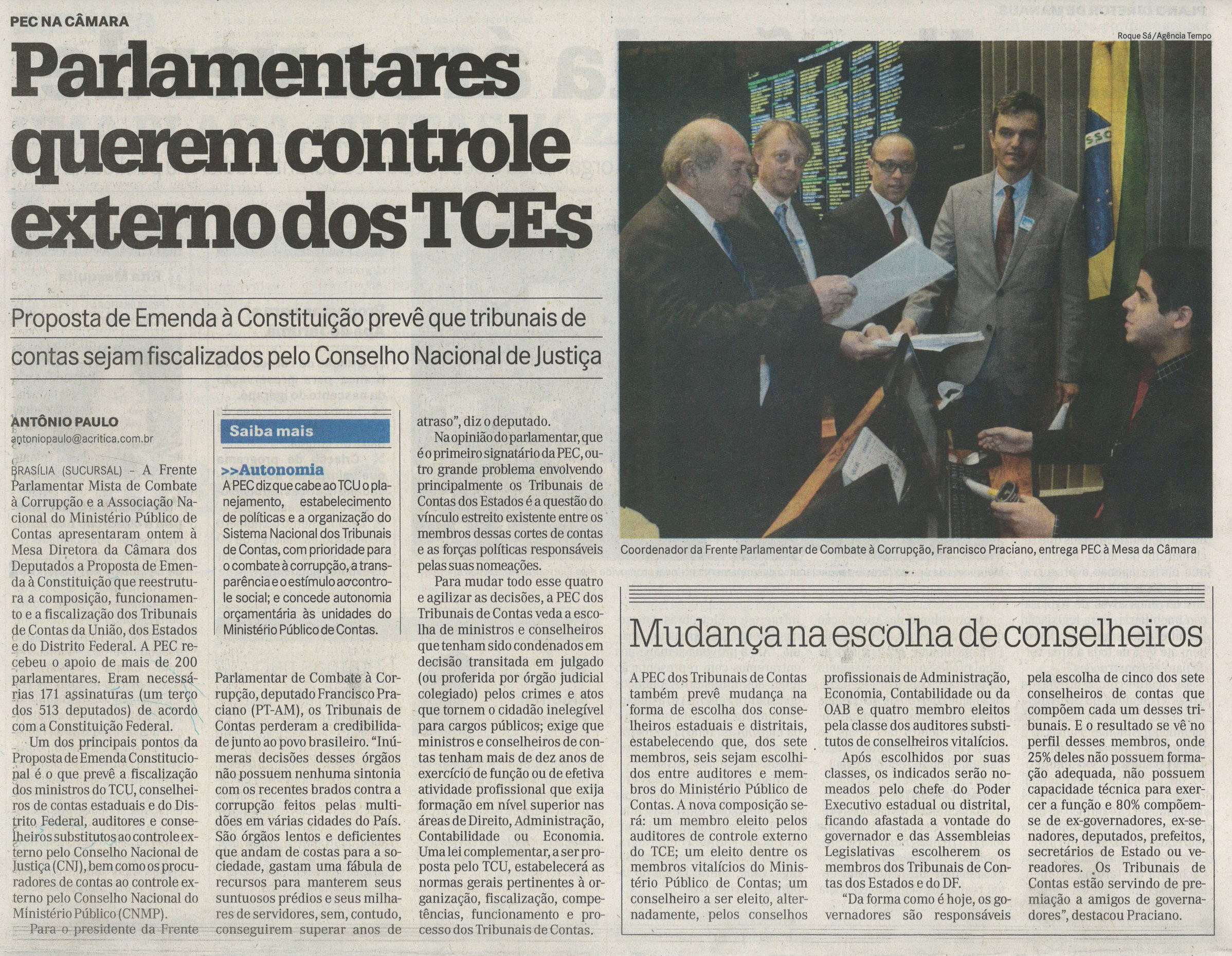 18/10/13 A Crítica Parlamentares querem controle externo dos TCEs