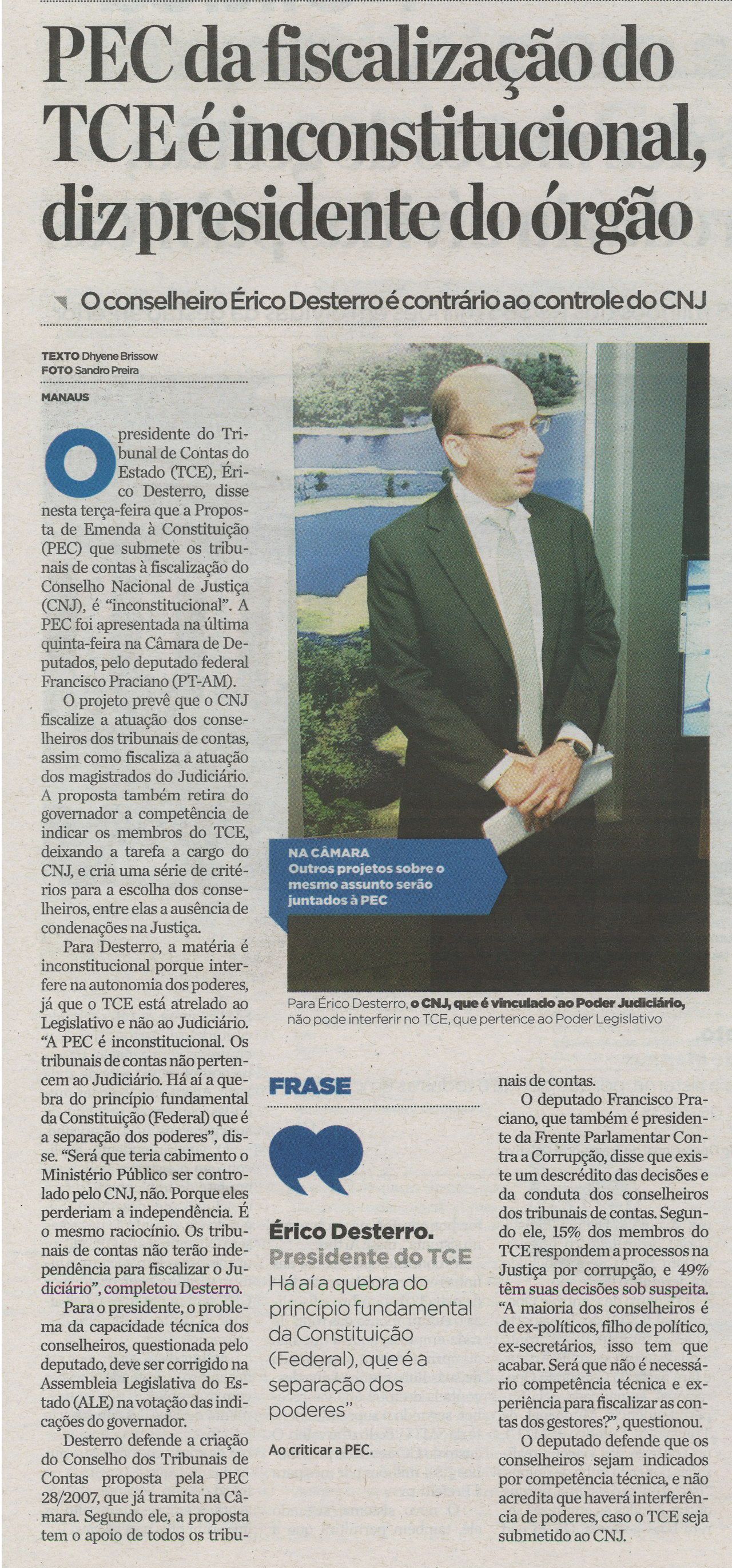 23/10/13 Diário do Amazonas PEC da fiscalização do TCE é inconstitucional, diz presidente do órgão