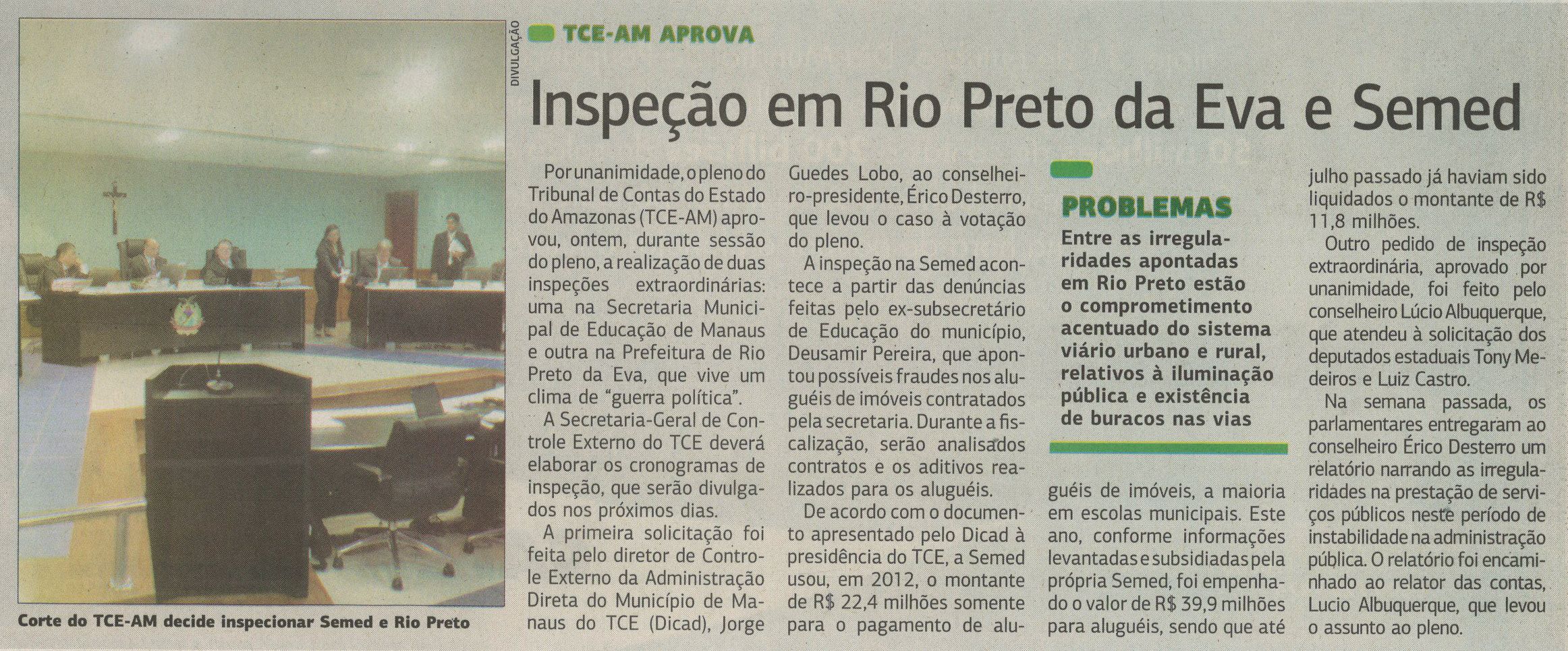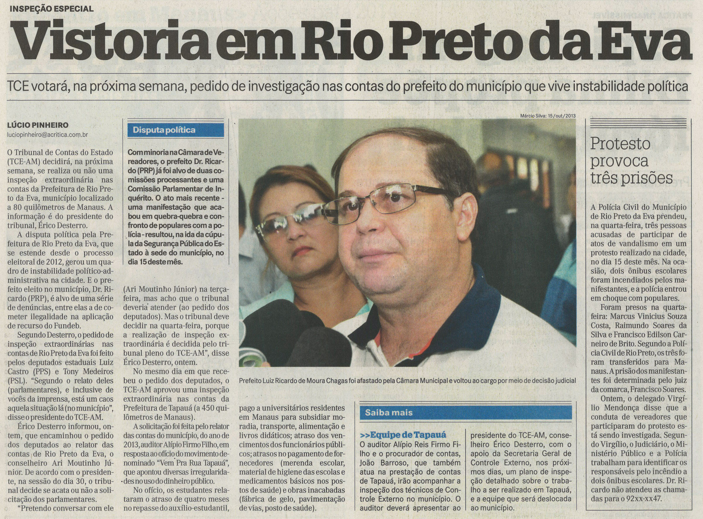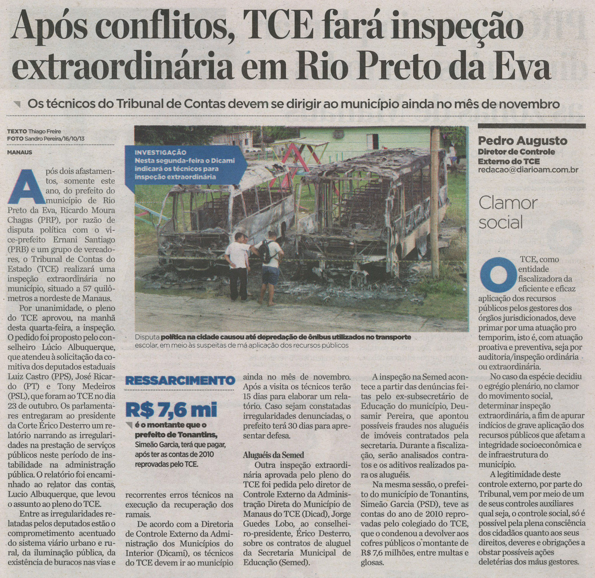 31/10/13 Diário do Amazonas Após conflitos, TCE fará inspeção extraordinária em Rio Preto da Eva
