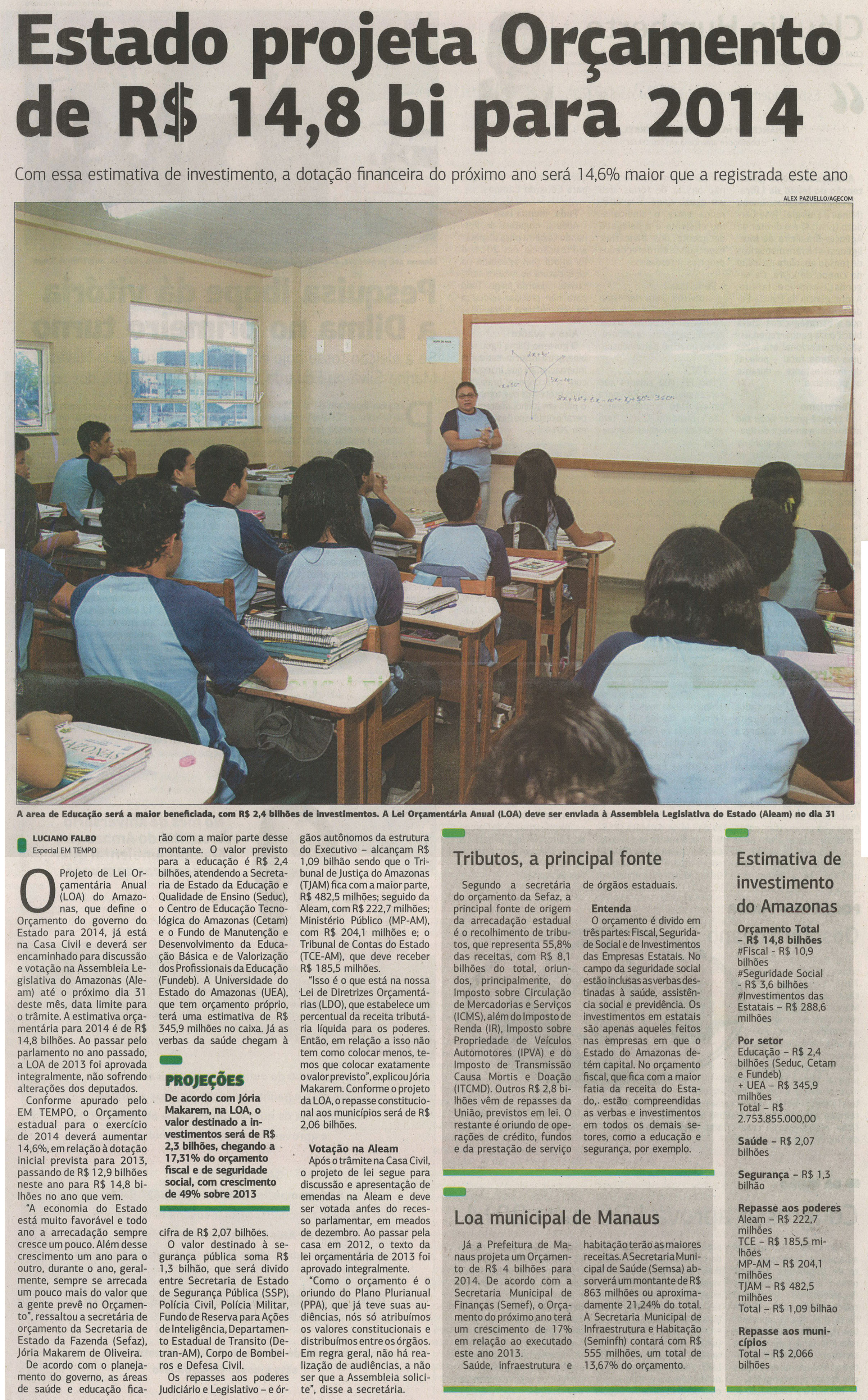 25/10/13 Amazonas em Tempo Estado projeta Orçamento de R$ 14,8 para 2014