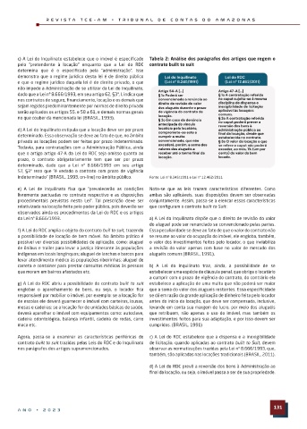 público, estando regida pelo regime jurídico administrativo, que (locação de bem mais compra de imóvel, ou de construção c) A Lei do Inquilinato estabelece que o imóvel é especificado Tabela 2: Análise dos parágrafos dos artigos que regem o