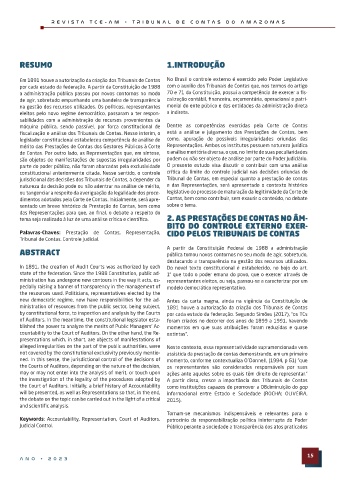 2 Graduada em Direito pela Universidade Federal do Amazonas. Pós-Graduada em Direito Público pelo Centro Universitário de Ensino Superior do Keywords: Accountability, Representation, Court of Auditors. patrocínio da responsabilização política ininterrupta do Poder