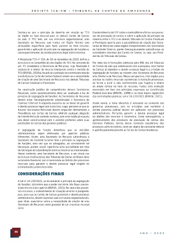 A segregação de função determina que as decisões e aperfeiçoamento perante as Cortes de Contas brasileiras.