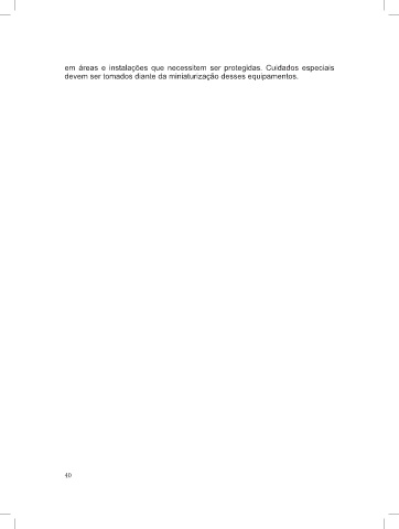 em áreas e instalações que necessitem ser protegidas. Cuidados especiais devem ser tomados diante da miniaturização desses equipamentos. 40