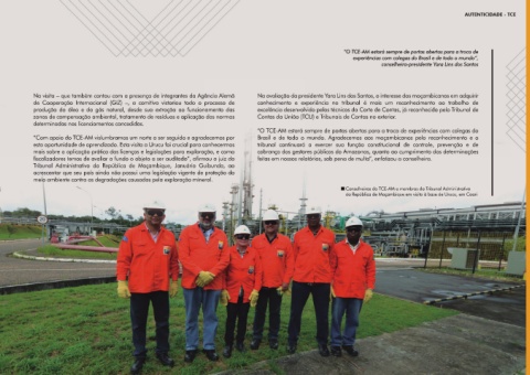 resoluções e resultados sobre resíduos sólidos, abastecimento de água, unidades de Pinheiro, a “Missão Moçambique” esteve ainda, nas instalações da Petrobrás na Província Conselheiros do TCE-AM e membros do Tribunal Administrativo