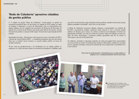 conselheira-presidente Yara Lins dos Santos, em agosto de 2018, atingiu as metas públicos prestados à sociedade”, disse Yara Lins dos Santos. Dando prosseguimento ao programa e intensificando a presença da Corte de vereadores e representantes da sociedade civil que atuam no Controle Social.