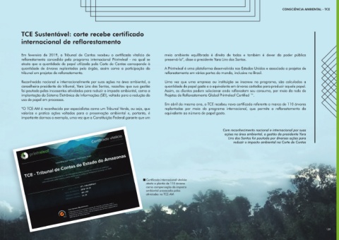 Em abril do mesmo ano, o TCE recebeu novo certificado referente a marca de 110 árvores tribunais. O plantio destas mudas representa todo o esforço que fazemos para atuar em