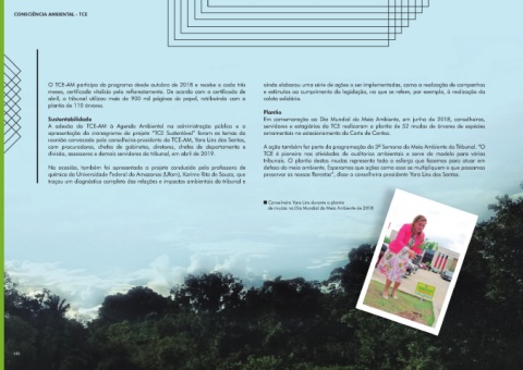 “O TCE-AM é reconhecido por especialistas como um Tribunal Verde, ou seja, que replantadas por meio do programa internacional, que permite o reflorestamento do Na ocasião, também foi apresentado o projeto conduzido pela professora de defesa do meio ambiente. Esperamos que ações como essa se multipliquem e que possamos