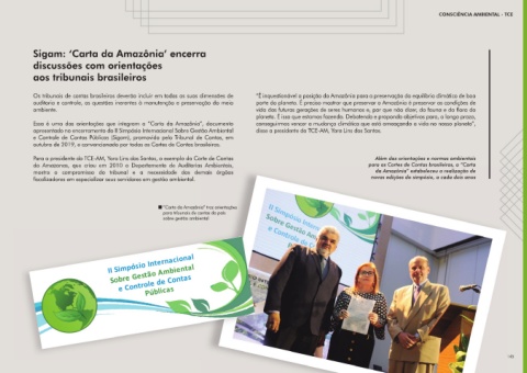 do Amazonas, que criou em 2010 o Departamento de Auditorias Ambientais, para as Cortes de Contas brasileiras, a “Carta prefeitos e secretários municipais para promover políticas públicas permanentes de juiz-conselheiro Vítor Caldeira, e do gerente das Organizações de Controle da África (African Amazonas, Eduardo Taveira, e o ex-senador da República, João Pedro Gonçalves.