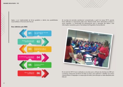 área externa do Tribunal de Contas, como demonstração do compromisso e da orçamentárias e financeiras do tribunal. foram definidos os responsáveis pelos eixos. Posteriormente, foram delineadas as etapas a em determinados eixos pela necessidade do suporte técnico, assim como foram desvencilhamento da Memória Institucional, por intermédio do resgate das fotos,