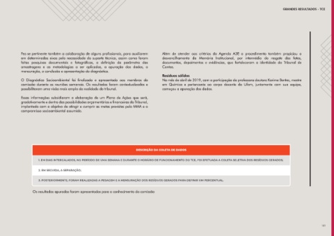 públicos, dos recursos financeiros, materiais e o manejo adequado dos resíduos gerados. A 1. EM DIAS INTERCALADOS, NO PERÍODO DE UMA SEMANA E DURANTE O HORÁRIO DE FUNCIONAMENTO DO TCE, FOI EFETUADA A COLETA SELETIVA DOS RESÍDUOS GERADOS;