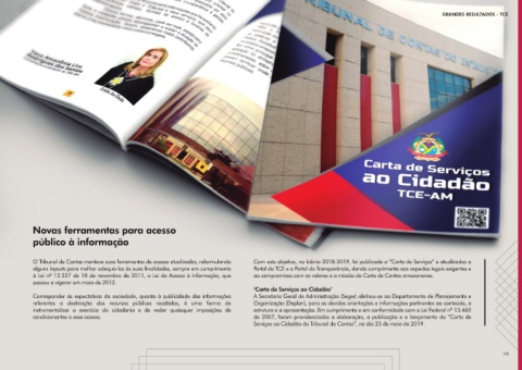 O Tribunal de Contas manteve suas ferramentas de acesso atualizadas, reformulando Com este objetivo, no biênio 2018-2019, foi publicada a “Carta de Serviços” e atualizados o • Exibição automática da edição atual do Diário Online – o recurso permite que todas um instrumento de transparência da gestão pública e o fortalecimento na participação social.