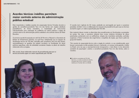 principalmente para as mulheres, porque representar ganhos pelos próximos anos é a com aumento previsto de demanda, pelos cotidiano das pessoas”, declarou a conselheira. Dois importantes e inéditos acordos de cooperação técnica firmados durante a O acordo (com vigência de 24 meses, podendo ser prorrogado por iguais e sucessivos fraudes de recursos públicos, o Tribunal de Contas e a Controladoria Geral do capacitação e a realização de fiscalizações conjuntas de interesse mútuo dos órgãos, com