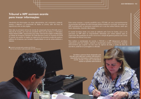 federais. Para realizar a coordenação do acordo, o TCE-AM e o MPF designaram servidores