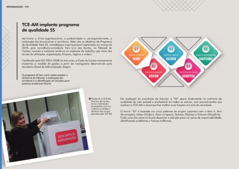 prestados pelo TCE-AM (Arrumação), Seiton (Ordem), Seiso (Limpeza), Seiketsu (Padrão) e Shitsuke (Disciplina).