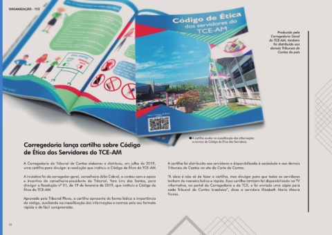 uma cartilha para divulgar a resolução que instituiu o Código de Ética do TCE-AM. Tribunais de Contas no site da Corte de Contas.