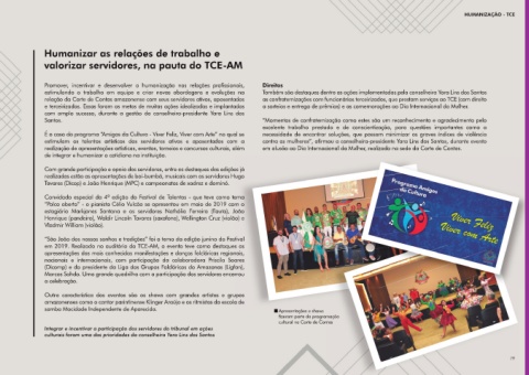 estimulam os talentos artísticos dos servidores ativos e aposentados com a contra as mulheres”, afirmou a conselheira-presidente Yara Lins dos Santos, durante evento