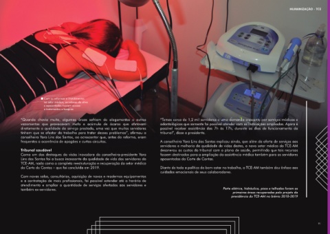 TCE-AM, nada como a completa reestruturação e recuperação do setor médico comenta a conselheira-presidente. Há ainda o diagnóstico energético, com o Data Center economizando, hoje,
