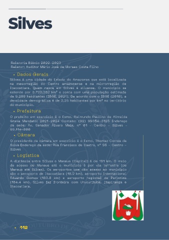 da sede: Av. Senador Álvaro Maia, n° 01 - Centro - Silves -