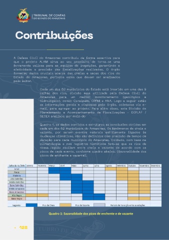 Quadro 1: Sazonalidade dos picos de enchente e de vazante