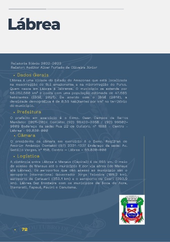 km). Lábrea faz fronteira com os municípios de Boca do Acre,