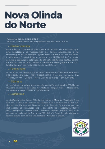 aeroporto regional de Parintins (291.8 km). Nova Olinda do Norte