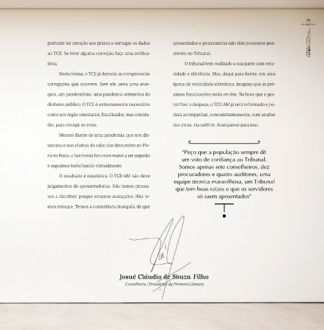 O Tribunal de Contas do Estado do Amazonas públicas. Essa inspeção é analisada por departa- como um órgão orientador, fiscalizador, mas orienta- derá acompanhar, concomitantemente, com analise